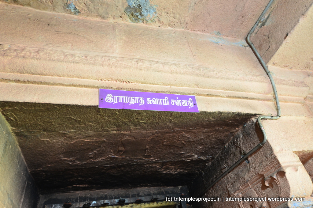 ராமாயணத்தில், பிராமணனும், தீவிர சிவபக்தருமான ராவணனைக் கொன்றதால், ராமருக்கு பிரம்மஹத்தி தோஷம் ஏற்பட்டது. அதனால், ராமர் திரும்பி வந்ததும், தோஷம் நீங்க, சிவபெருமானை பல்வேறு இடங்களில் வழிபட முயன்றார். அவர் இவ்விடம் வந்தபோது சிவன் கோயிலைக் கண்டு மகிழ்ந்து இங்கு வழிபட விரும்பினார். இருப்பினும், நந்தி – ராமர் யார் என்று தெரியாமல் – அவரது தோஷம் காரணமாக அவரை கோவிலுக்குள் நுழைய விடாமல் தடுத்தார். உடனே அம்மன் நந்தியை ஓரமாக அழைத்துச் சென்று நிலைமையை விளக்கி, ராமர் இங்கு சிவனை வழிபட அனுமதித்தார். இக்கதையிலிருந்து, மூலவருக்கு ராமநாதேஸ்வரர் (மற்றும் சில சமயங்களில் ராமனந்தீஸ்வரர்) என்ற பெயர் வந்தது. இன்றும் கூட, மாலையில் சாயரக்ஷை பூஜை ராமரால் செய்யப்படுகிறது என்று நம்பப்படுகிறது, மேலும் இந்த பூஜையைக் காண்பது பக்தர்களுக்கு மிகவும் மங்களகரமானதாகவும் நன்மை பயக்கும் என்றும் கருதப்படுகிறது. தீபாராதனையின் போது, லிங்கத்தின் மீது ஒரு சுடரின் (ராமர் வழிபட்டதாகக் கருதப்படுகிறது) பிம்பத்தைக் காணலாம்.