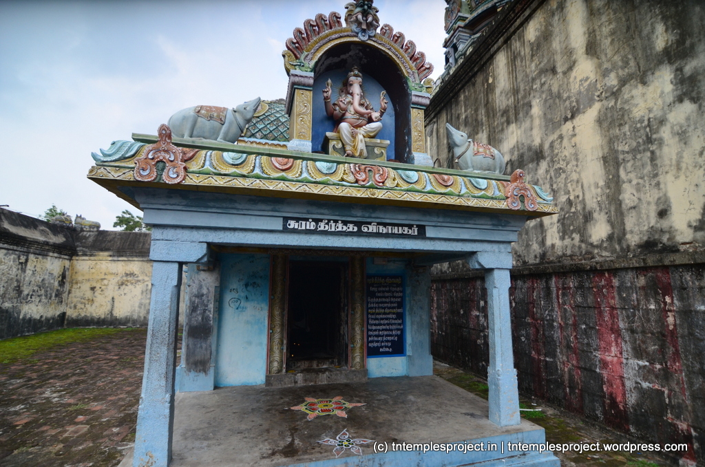 Connected with the above story is the Vinayakar who was also nearby, and helped in the reviving of the boy. Vinayakar is therefore called vitam-teertha Vinayakar (vitam/visham = poison). This Vinayakar shrine has two other Vinayakar murtis inside, who are said to have been worshipped by Seeralan, son of Siruthondar Nayanar.