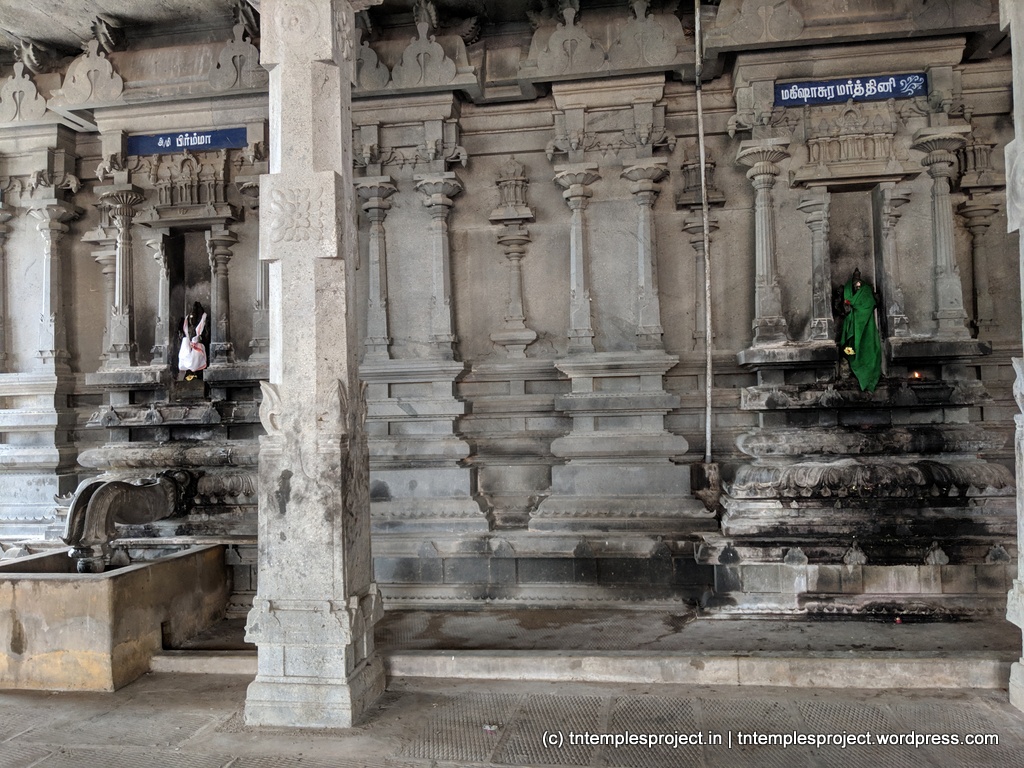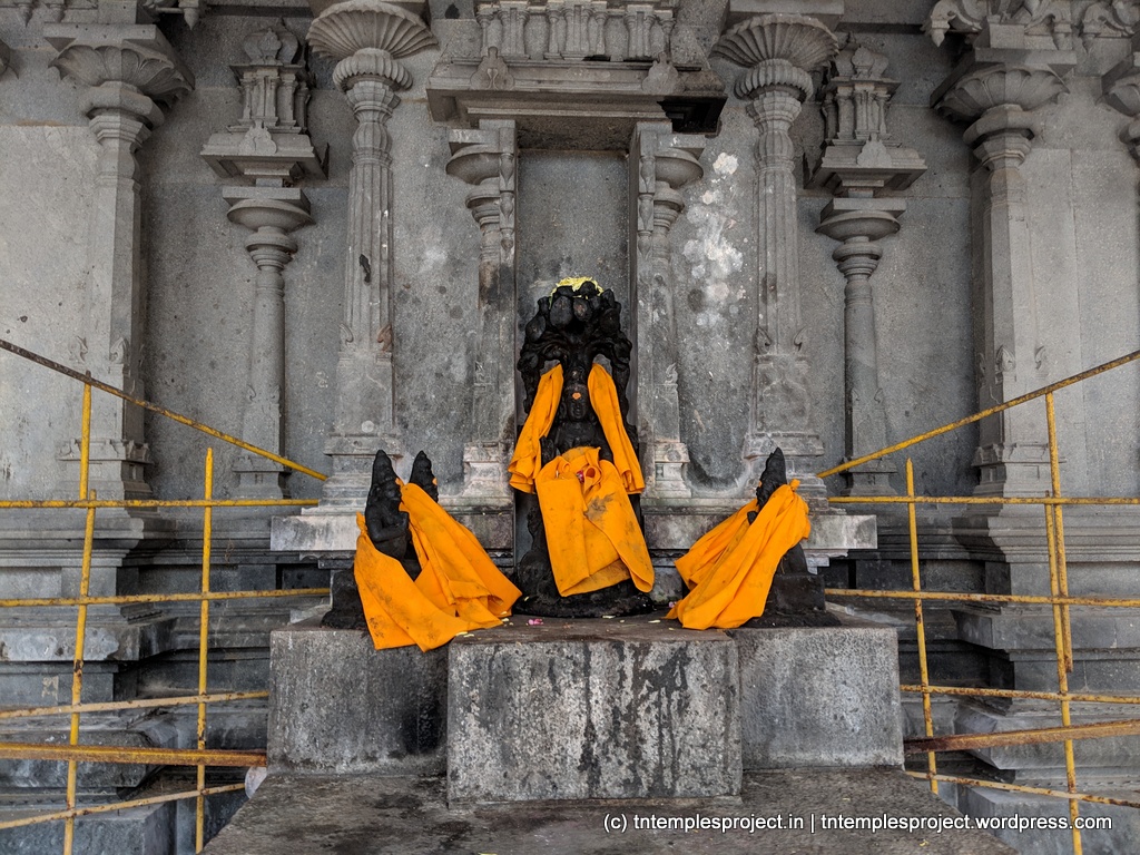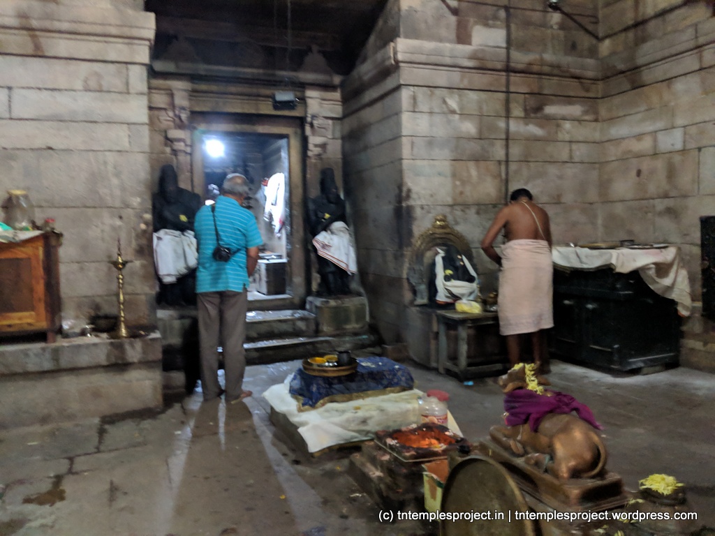 This is a west-facing temple. Siva and Parvati face each other – typically, such an arrangement is considered a guru-sthalam, with Siva taking the role of Parvati’s guru.