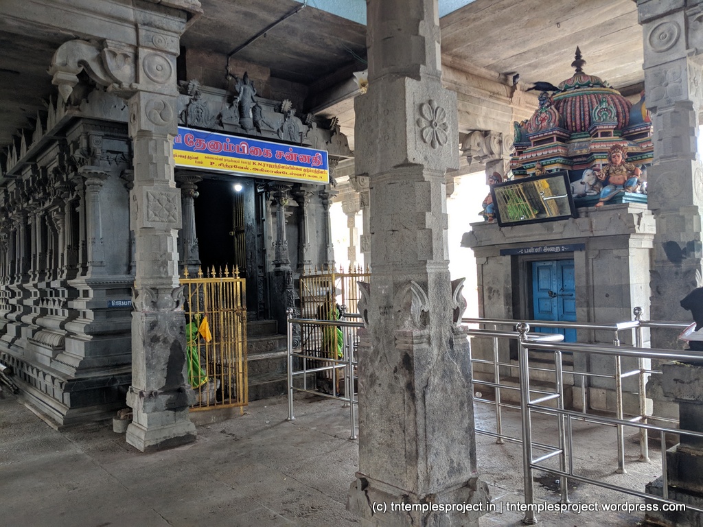 About 1km east of this temple is the Airavateswarar temple, which is a Tiruvisaippaa temple, sung by Karuvur Thevar. This place is regarded as where Airavata’s bell fell, when Indra came to Kottur. The Lord is said to have performed his cosmic dance here on the day of Ani pournami.