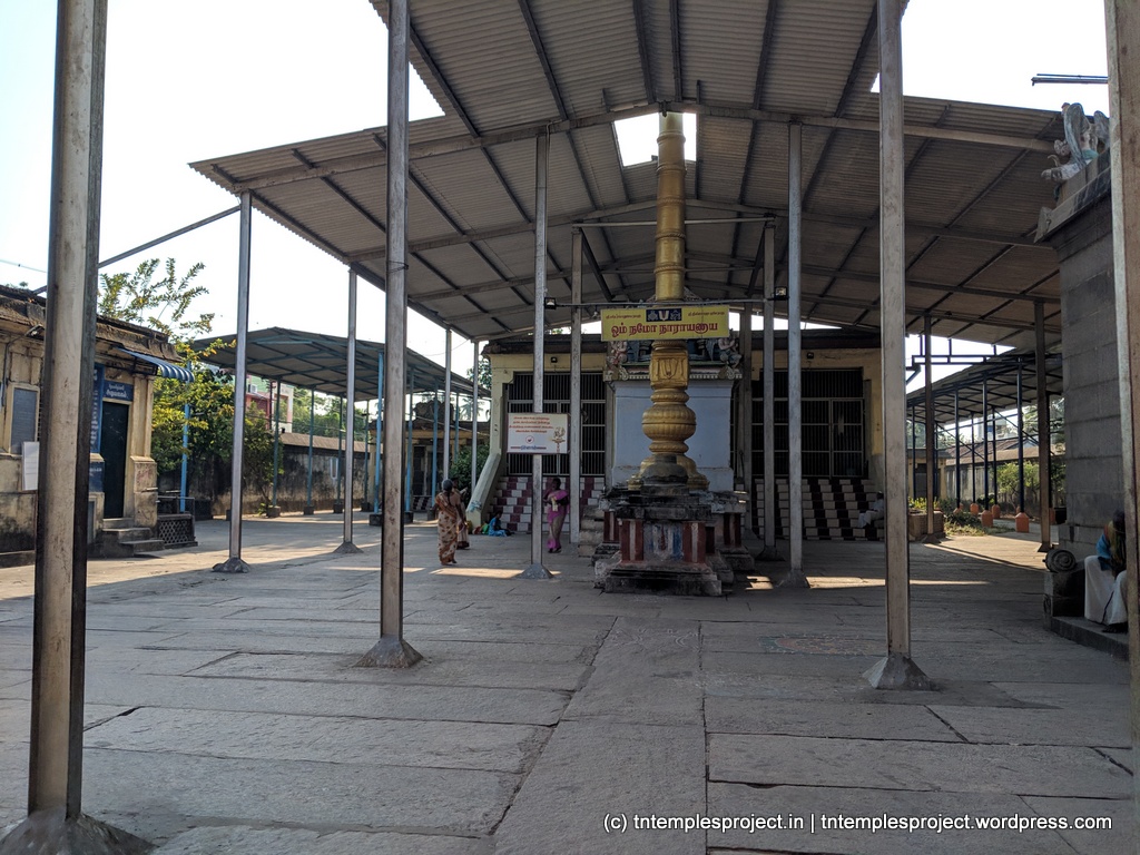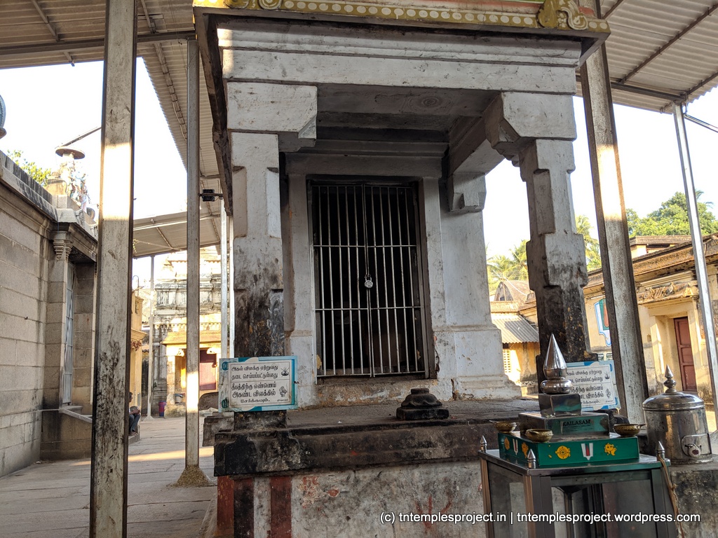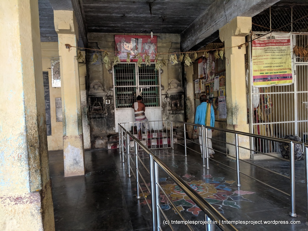 இங்கே விஷ்ணு திரிவிக்ரம பெருமாளாகக் காணப்படுகிறார். வாமன அவதாரத்தில், வாமனன் மன்னர் மகாபலியிடம் மூன்று படி நிலத்தைக் கேட்டார், பின்னர் தனது அளவை அதிகரித்து, அதன் மூலம் ஒரு படியால் வானத்தையும் இரண்டாவது படியால் பூமியையும் மூடினார். இந்தக் கோயிலில், விஷ்ணு தனது இடது காலை மேலே உயர்த்தி, பூமியை வெல்லப் போகிற நிலையில், இடது ஆள்காட்டி விரலால் மூன்றாவது அடியை எங்கே வைப்பது என்று கிட்டத்தட்ட கேள்வி கேட்பது போல் காட்டப்படுகிறார். தாயார் ஒரு காலில் நிற்பதால் ஏற்படும் அசௌகரியத்தை உணராதபடி இறைவனை மார்பில் தாங்கியிருப்பது போல் காணப்படுகிறது. (மாறாக, திருக்கோவிலூரில் உள்ள திரிவிக்ரம பெருமாள் வலது காலை மேலே உயர்த்தி இருப்பது போல் காணப்படுகிறது.)