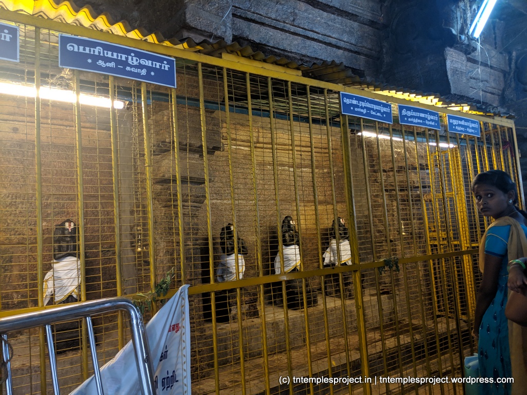 மூலஸ்தானத்தில் காளமேகப் பெருமாள் பஞ்சாயுத கோலத்தில் ஸ்ரீதேவி, பூதேவியுடன் வீற்றிருக்கிறார். மற்ற கோவில்களைப் போல் தாயார் பெருமாளின் பாதங்களைத் தொடுவதில்லை. பிரார்த்தனா சயனத்தில் ரங்கநாதர் தனி சன்னதியில் இருக்கிறார், மோகனவல்லி தாயாருக்கும் தனி சன்னதி உள்ளது.