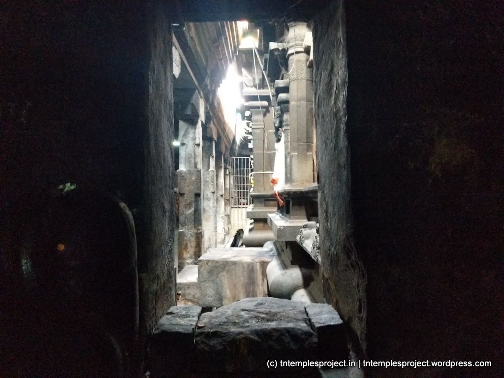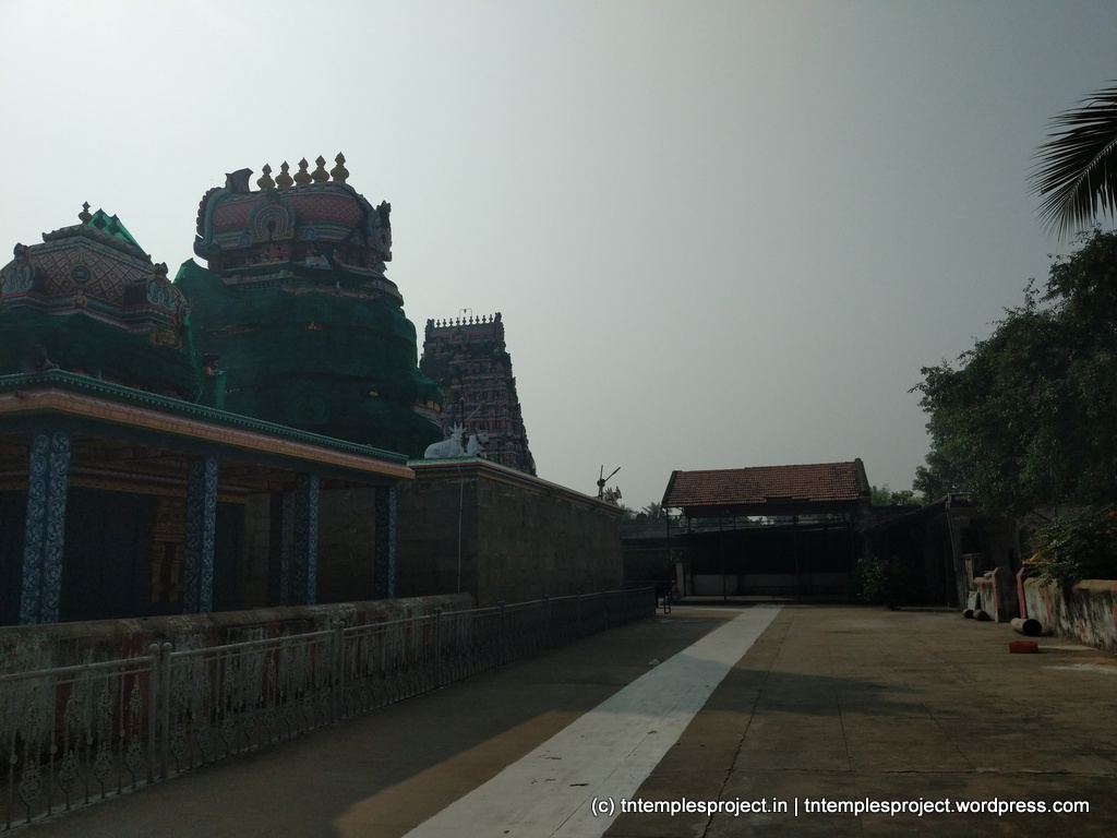Interestingly, there are 2 Nandis here – while once faces the moolavar, the one in the outer prakaram faces away from the garbhagriham. The one facing away is said to be the Nandi ordered by Siva to protect the temple, according to the sthala puranam above.