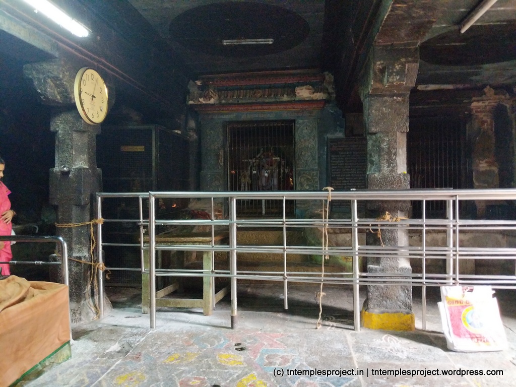 Amman here is called Kodiyidai Amman (the one whose waist is as slender as a jasmine vine), whose shrine is to the right of the moolavar. At this temple, She represents the Kriya Sakti. Together with the Vadivudai Amman at the Adipureeswarar temple at Tiruvotriyur (Gnana Sakti) and Tiruvudai Amman at the Minjur Tirumangeeswarar temple (Ichcha Sakti), these three Ammans represent the Tri-Saktis that are of significance in Hinduism, and are said to bless devotees with all their needs and aspirations, particularly if visited on the same day (and more so on full moon days and Fridays).