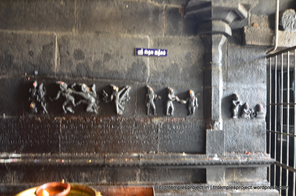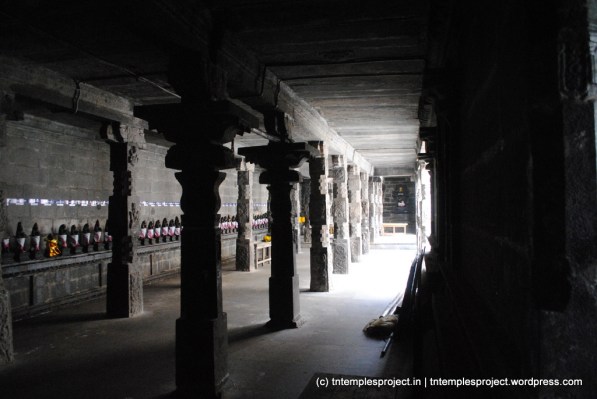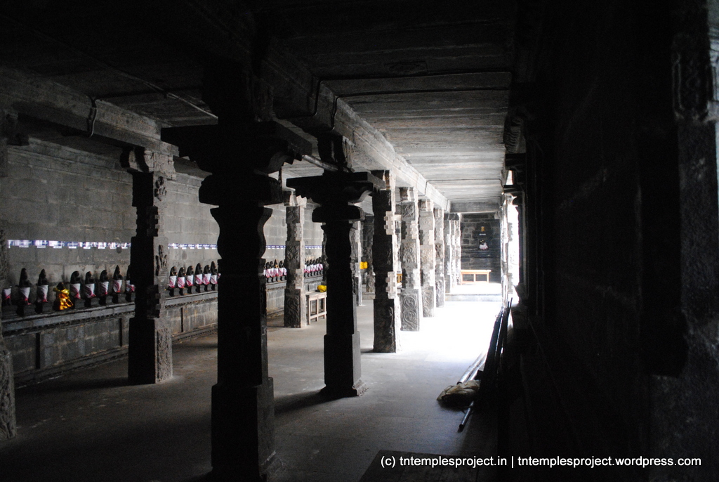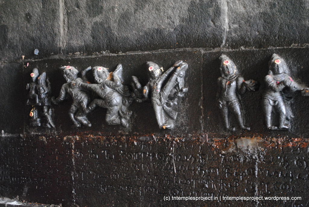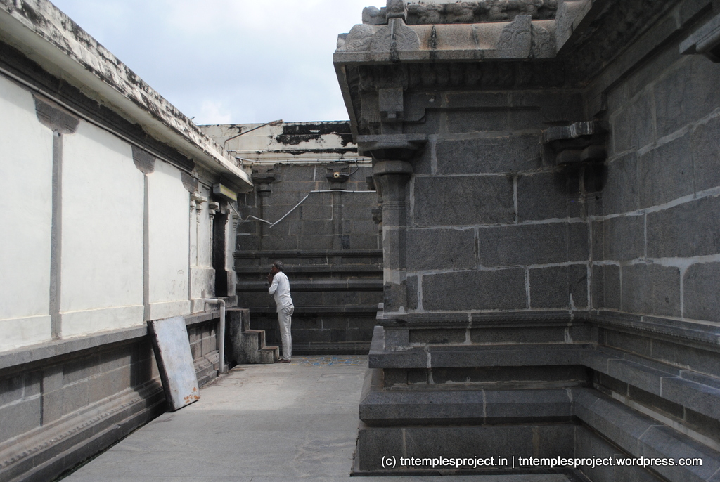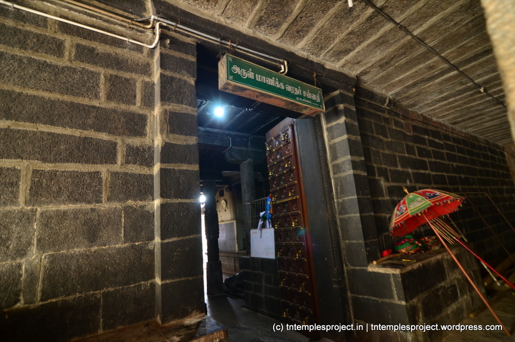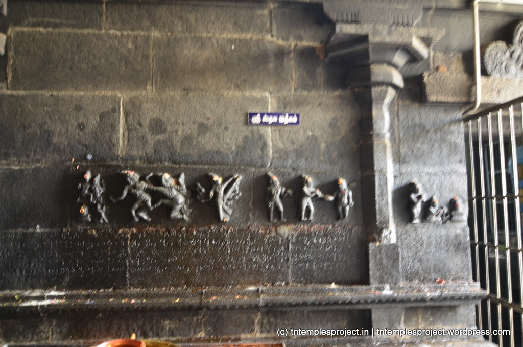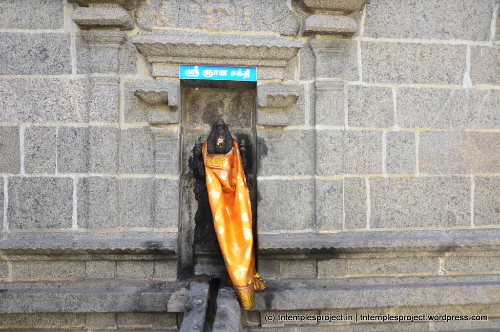 The core temple is ancient and regarded as having been built in the time of Trishanku and Harischandra. Since Sambandar sang a pathigam at this temple, the temple is certainly over 1400 years old. The architecture of the structural temple is medieval Chola, evidenced by the granite and stone building as well as the sculptures and iconography in the temple. Interesting iconography here includes Dinka, the rodent vehicle of Vinayakar, present to his master’s side, as well as the absence of mahisha the bull, under Durga. There are also several inscriptions on the outer wall of the garbhagriham, and elsewhere inside the temple.