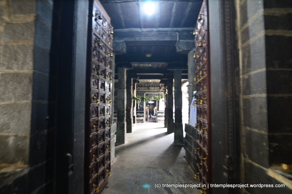 Although She has a separate shrine in the temple, Parvati is considered to be also present with Siva in the garbhagriham at all times. So there is no separate palliyarai (bedchamber) for the deities, and the garbhagriham itself is considered the palliyarai, representing Siva-Sakti.