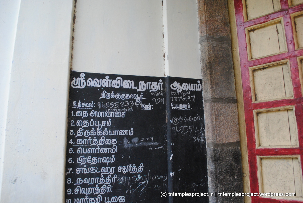 வேள்விடைநாத சுவாமி என்ற சிவனின் பெயர் வெள்ளா (வெள்ளை) மற்றும் இடாய் (காளை, ரிஷபத்தைக் குறிக்கும் காளை) என்பதிலிருந்து வந்தது – முக்கியமாக, இறைவன் வெள்ளைக் காளையின் மீது சவாரி செய்கிறான். சிவனை வழிபடவும் சேவை செய்யவும் விஷ்ணு ஒருமுறை ரிஷபம் அவதாரம் எடுத்ததாக கூறப்படுகிறது. இங்குள்ள சிவனுக்கு ரத்னகுரேசுவரர் என்று மற்றொரு பெயர். இங்குள்ள அம்மனுக்கு நீலோத்பலா விசாலாக்ஷி என்ற அழகிய பெயர் உண்டு. இந்த இடத்தின் பெயர்களின் தோற்றம் மிகவும் சுவாரஸ்யமானது. மேற்குறிப்பிட்ட வெள்ளைடைநாதரின் சொற்பிறப்பிலிருந்து இத்தலம் பழங்காலத்தில் ரிஷபபுரம் என்றும் அழைக்கப்பட்டது. சிவன் சம்பந்தருக்கும் அவரைப் பின்பற்றியவர்களுக்கும் தயிர் சாதம் ஊட்டியதால், இத்தலம் ததியோன்னபுரம் என்று அழைக்கப்பட்டது. அக்னி புறா வேடத்தில் சிபி சக்ரவர்த்தியை சோதித்ததைப் பற்றி படித்திருக்கிறோம். அக்னி தனது அசல் வடிவத்தை மீண்டும் பெற இங்கே வழிபட்டார், இதற்காக இங்கு ஒரு தொட்டியை உருவாக்கினார். குருவி என்பது புறாவைக் குறிக்கும் தமிழ், இதனாலேயே குரு-கவுர் என்ற பெயர் வந்தது.