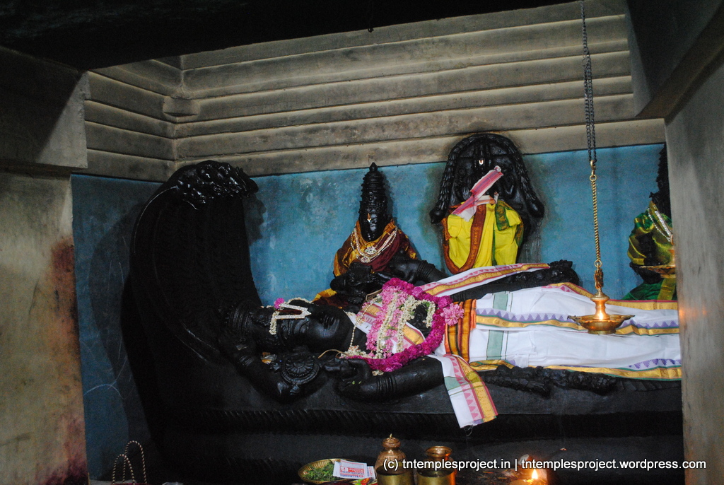 பெருமாள் திருப்பாற்கடலில் (க்ஷீராப்தி என்றால் சமஸ்கிருதத்தில் பால்) மற்றும் நான்கு கரங்களுடன் சயன கோலத்தில் தெற்கு நோக்கியும், வடக்கு நோக்கிய பாதங்களுடன் காட்சியளிக்கிறார். – ஆதிசேஷன். ஸ்ரீதேவி மற்றும் பூதேவி முறையே அவரது தலை மற்றும் பாதங்களில் அமர்ந்துள்ளனர், மேலும் பிரம்மா அவரது தொப்புளிலிருந்து வெளிப்படுவதைக் காணலாம். மூர்த்தி திருமஞ்சனம் (அபிஷேகம்) பெறுவதில்லை; மாறாக, மூலவருக்கு அபிஷேகம் செய்ய சிறப்பு எண்ணெய்கள் மட்டுமே பயன்படுத்தப்படுகின்றன. க்ஷீர நாயகி தாயாருக்கும், அபய வரதருக்கும் தனித்தனி சன்னதிகள் உள்ளன. சுவாரஸ்யமாக, விஷ்ணு துர்காவிற்கும் தெற்கு நோக்கி ஒரு தனி சன்னதி உள்ளது, அவர் மிகவும் சக்தி வாய்ந்தவராக கருதப்படுகிறார்.