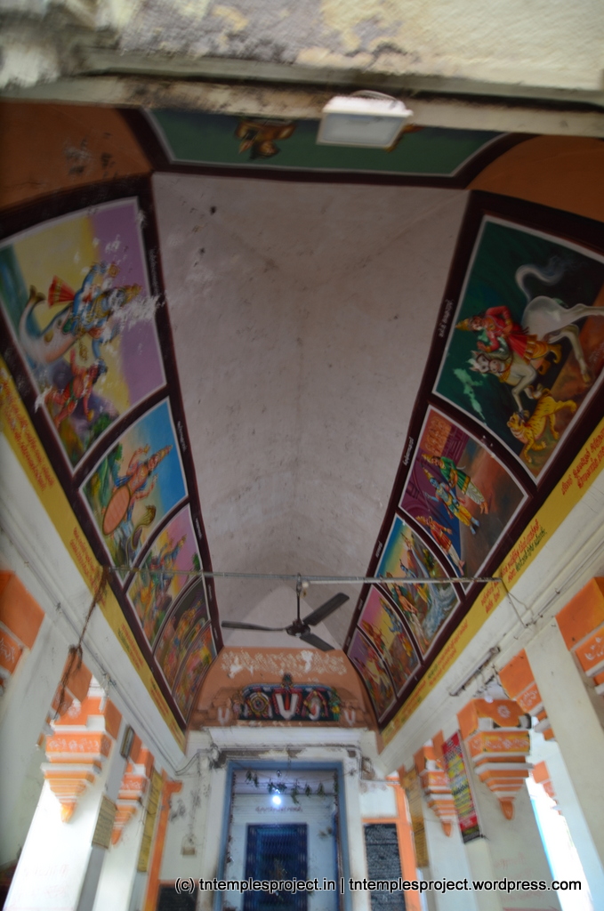 Perumal here is said to have come from Dwarka. After the Mahabharatam war, Krishna was going back to Dwarka, when Sage Uthangar stopped him and asked him about the war. Krishna responded that the Pandavas had won and Kauravas had lost. The sage asked why that was the case, and Krishna responded that it was due to their fate, caused by karmas in their previous birth. The sage persisted, as to why that was the case; again Krishna responded it was due to fate. Through all of this, the sage was effectively hinting that Krishna made the Pandavas win because he liked them. To put an end to this, at least for the moment, Krishna gave the sage a vision of His Viswaroopam. This calmed the sage a bit, and he obtained a boon, that he would get water whenever he wanted to, because it was otherwise difficult to get water in the area. A few days later, the sage was thirsty, and thought of Krishna. Then he saw a man – who appeared to be of lower class – carrying a pot, along with a few dogs. The man said he had water, and asked if the sage wanted some. Based on the man’s appearance, the sage rejected the offer, and the man vanished. Instead, Krishna appeared, saying that the man was Indra and the pot actually had amritam, and it was fate that no human could ever savour it. It was the same fate that made the Pandavas win the war.