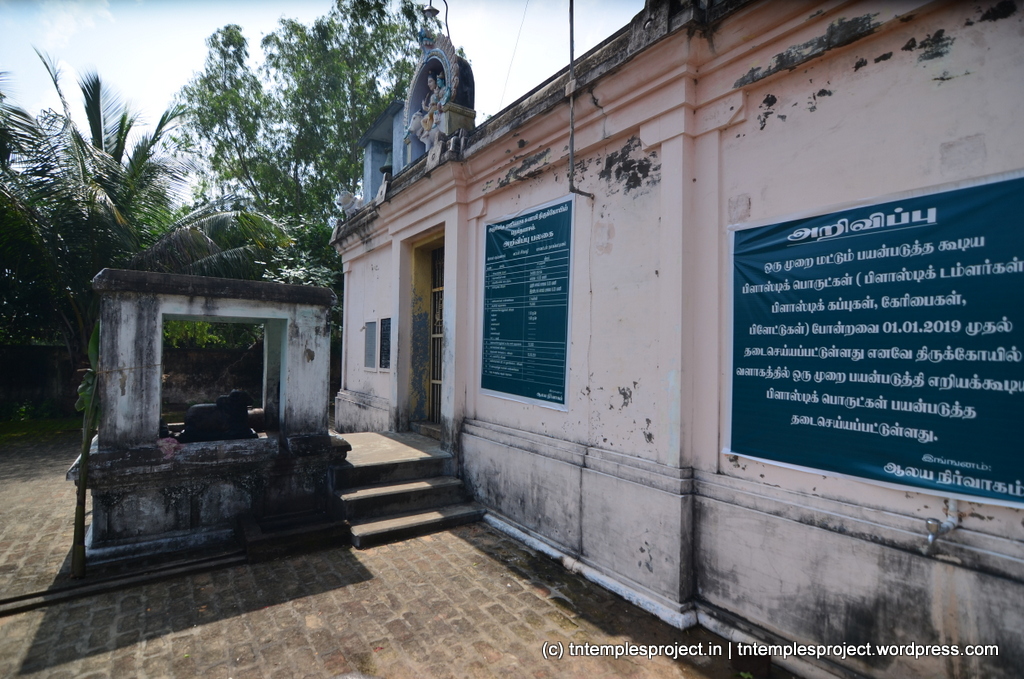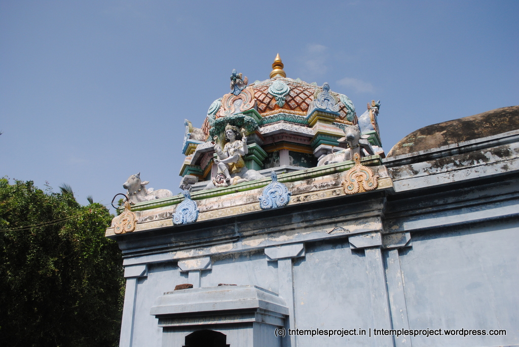 Likely to have been built as a structural temple during the Chola period, what we see today is almost entirely a brick and mortar temple. however, the vimanam over the garbhagriham and the Amman shrine are simple but very well done. These, and the barely visible vavvaal-nethi mandapam, are the only indications that this would likely have been a Chola temple.
