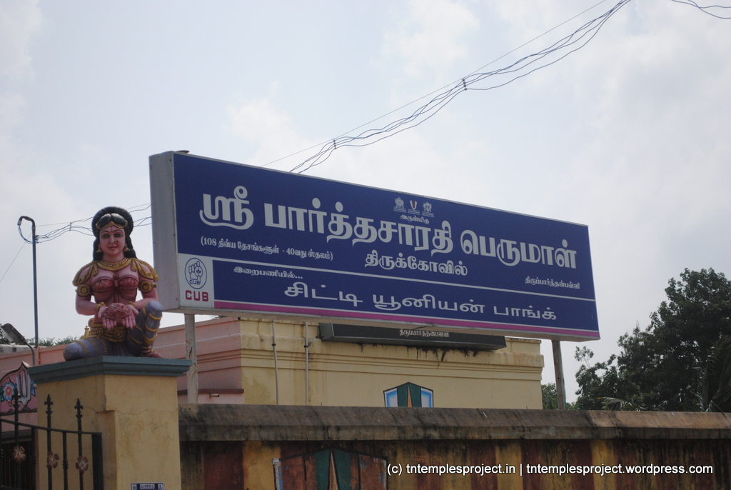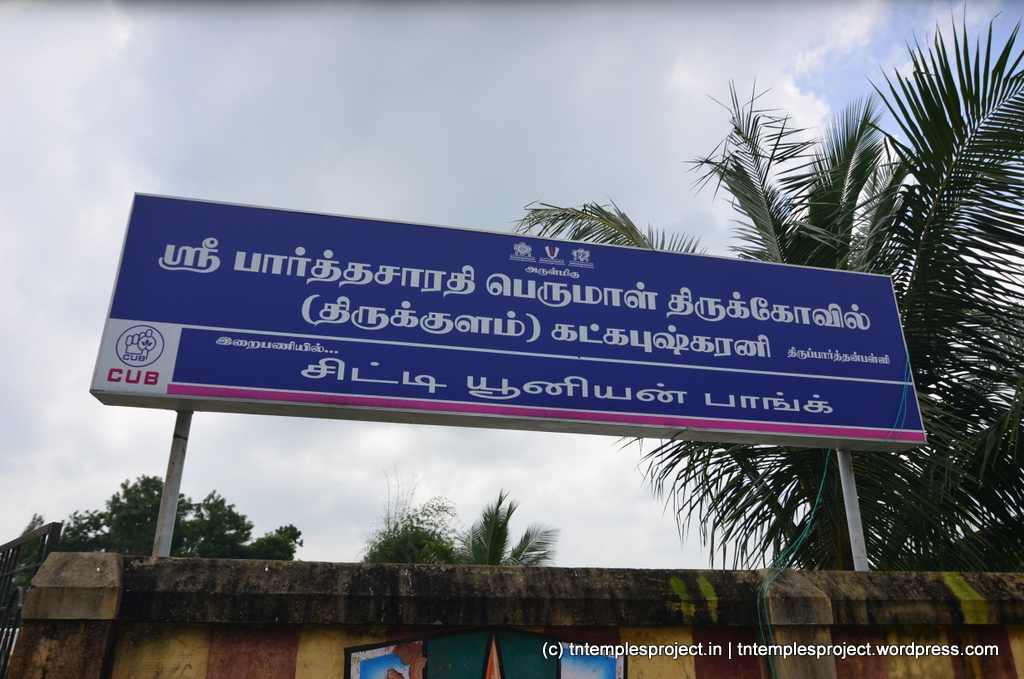 பார்த்தன் அர்ஜுனனைக் குறிக்கிறது. பார்த்தன்பள்ளி என்பது அர்ஜுனனுக்கான இடம். கிருஷ்ணர், பார்த்தசாரதிப் பெருமாளாக, அர்ஜுனனுக்காகவே இந்தக் கோயிலுக்கு வந்தார். மகாபாரத காலத்தில் அர்ஜுனன் தெற்கு நோக்கி வந்தான். ஒரு நாள், வேட்டையாடும் போது, அவருக்கு தாகம் ஏற்பட்டது. அகஸ்திய முனிவர் இந்த இடத்தில் தவம் செய்து கொண்டிருந்ததால், அர்ஜுனன் முனிவரை அணுகி, சிறிது தண்ணீர் கேட்டார். அகஸ்தியர் தனது கமண்டலத்திலிருந்து தண்ணீரை ஊற்றினார், ஆனால் அது அர்ஜுனனின் கைகளைத் தொட்டவுடன் மறைந்தது. இது ஒரு தெய்வீக நாடகம் என்பதை தனது பார்வையால் உணர்ந்தார் அகஸ்தியர், பாண்டவர்கள் எப்போதும் கிருஷ்ணனிடம் தங்கள் தேவைகளை நிறைவேற்றிகொள்வார்கள். அகஸ்தியர், கிண்டல் செய்யும் விதமாக, அர்ஜுனனை தண்ணீர் கேட்டதற்காகக் கண்டித்தார்.அர்ஜுனன் கிருஷ்ணரிடம் பிரார்த்தனை செய்தார், அவர் உடனடியாக இங்கு வந்து, தனது வாளை பயன்படுத்தி தரையில் வெட்டினார். உடனே, கங்கை நதி அங்கு ஓட ஆரம்பித்து, கோவில் குளமாக மாறியது – கட்க தீர்த்தம். இங்குள்ள பெருமாள் குருக்ஷேத்திரத்தில் இருந்து வந்ததாக நம்பப்படுகிறது.