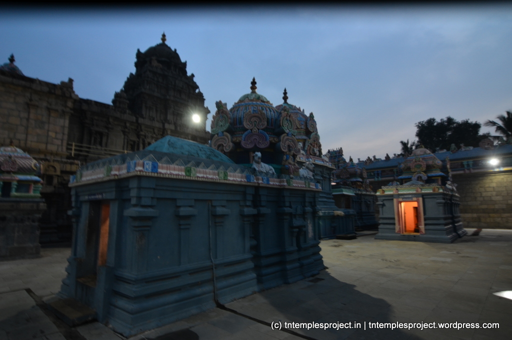சிவன் மற்றும் பார்வதி இருவரின் சன்னதிகளும் கிழக்கு நோக்கியவாறு, மூலவரின் வலதுபுறத்தில் அம்மன் சன்னதியுடன், இது ஒரு கல்யாண கோலத்தின் சித்தரிப்பு என்பதைக் குறிக்கிறது. கோவிலின் ஸ்தல விருட்சத்தின் கீழ் ஒரு லிங்கம் உள்ளது, இது அகஸ்தியரால் வழிபட்டதாகக் கூறப்படுகிறது. இக்கோயில் தனித்துவமான நவக்கிரக அமைப்பையும் கொண்டுள்ளதுஒரு வரிசையில் ஒன்பது கிரகங்கள், மாறாக அவற்றின் வழக்கமான சதுர உருவாக்கம். இதுதவிர, வீணாதரா தட்சிணாமூர்த்தி மற்றும் பிக்ஷடனர் உள்ளிட்ட சில பிரமிக்க வைக்கும் கட்டிடக்கலை இக்கோயிலில் உள்ளது.