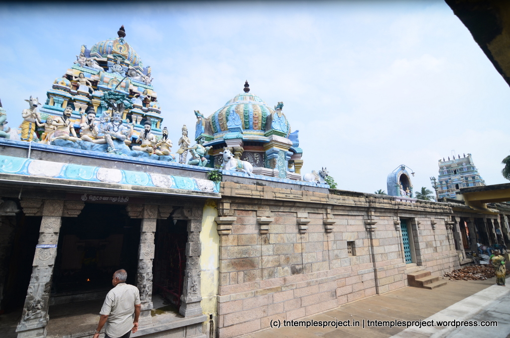 The frontage of this temple makes it appear small, but once inside, one can see the relative vastness of the temple complex. The core temple existed at least in the 8th or 9th century, going by Sambandar’s lifetime. While the structural temple is believed to have come up in the 15th century, it is devoid of any of the aspects of the Chola temples otherwise found in the region. Nonetheless, the stonework and limited architecture is pleasing to the eye.