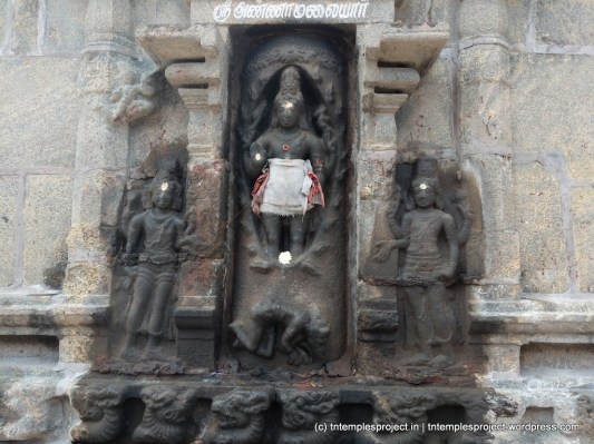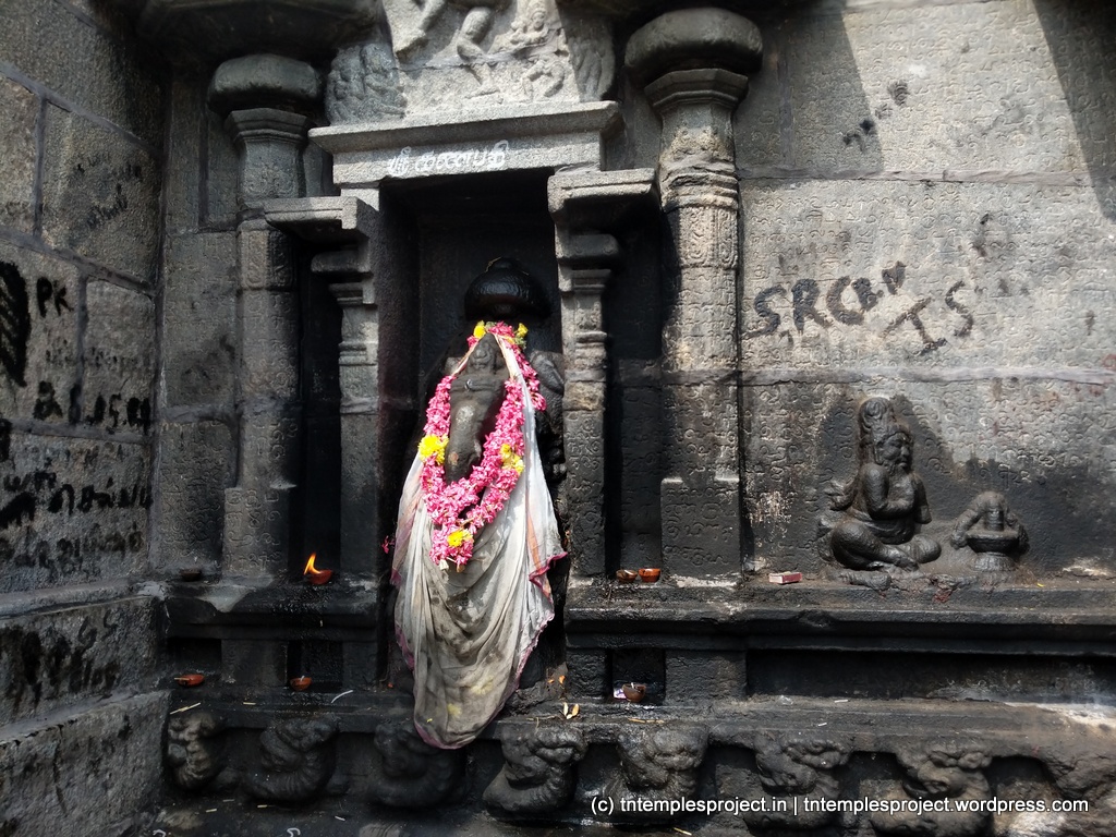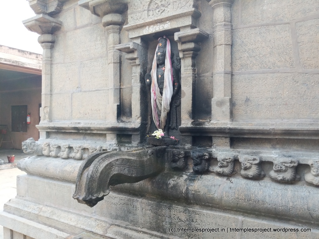 The core structural temple is early Chola, and is said to have been built with bricks. It was renovated using granite, in the time of Raja Raja Chola I. Inscriptions in the temple refer to contributions by Raja Raja Chola I, Rajendra Chola I, Rajadhiraja and Kulothunga Chola I. Though this is a relatively small temple, the architectural work is just as it is in any other Chola temple of the times. In particular, Lingodhbhavar is depicted beautifully, and shows Vishnu and Brahma on either side, worshipping Siva as the column of fire (such a depiction is also said to be auspicious, as Siva temples go). Murugan is depicted holding a bow instead of his usual Vel (spear).