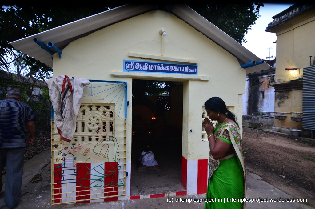 வெளிப் பிரகாரத்தின் தெற்குப் பகுதியில் ஆதி மார்கசஹாயேஸ்வரருக்கு தனி சன்னதி உள்ளது – இது ஸ்தல புராணத்துடன் தொடர்புடைய மூல லிங்கமாக இருக்கலாம். இக்கோயிலில் சௌந்தரநாயகி மற்றும் மங்களாம்பிகை ஆகிய இரு அம்மன்கள் தனித்தனி சன்னதிகளுடன் உள்ளனர், இது வழக்கத்திற்கு மாறானது இக்கோயிலில் உள்ள ஒரு சிறப்பு அம்சம், கர்ப்பகிரகம் வரை செல்லும் 4 நந்திகள், இங்கு ஐந்தாவது நந்தியின் முன் உள்ளது. மூலவர்.