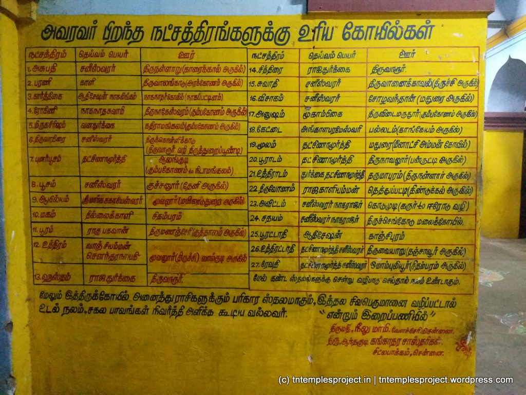 ஒரு குறிப்பிட்ட பிறந்த நட்சத்திரத்திற்கு குறிப்பிட்ட பல கோயில்கள் உள்ளன, இருப்பினும், இந்த குறிப்பிட்ட கோயில் ஒவ்வொரு ஜென்ம நட்சத்திரத்திற்கும் நன்மை பயக்கும் என்று கூறப்படுகிறது, பக்தர்கள் தங்கள் ஜென்ம நட்சத்திரத்தின் நாளில் இங்கு வழிபடும் வரை. குறிப்பாக உத்திரம் நட்சத்திரத்தில் பிறந்தவர்கள் வழிபட ஏற்றது.