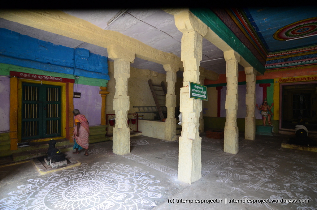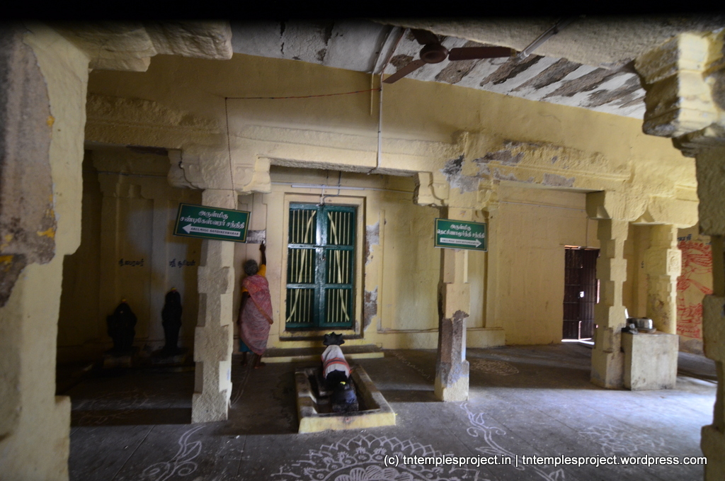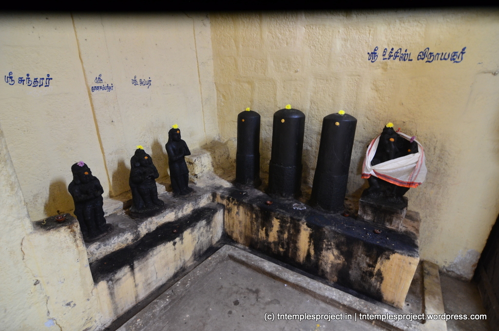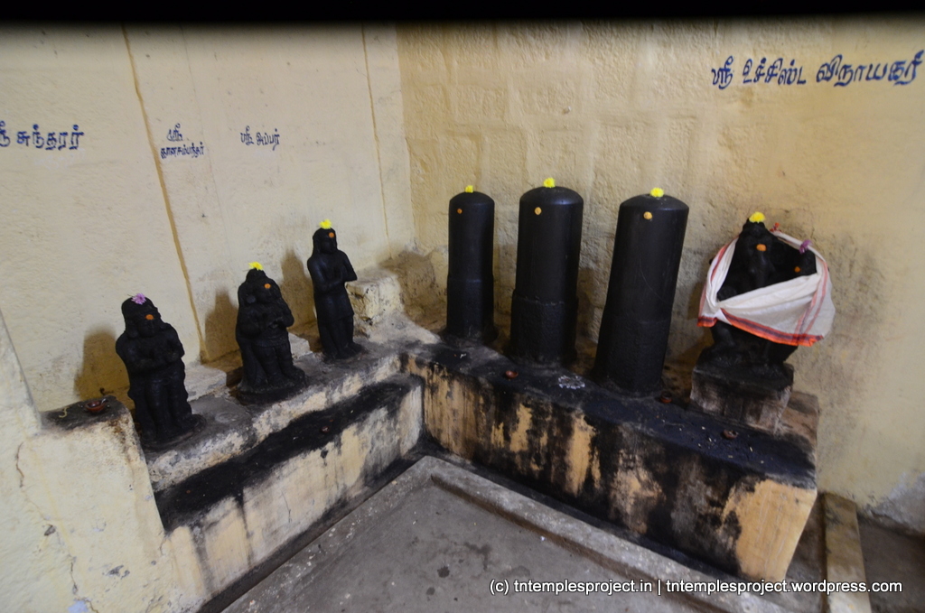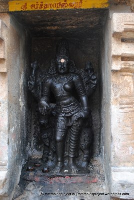The specialty of this temple is the Ardhanareeswar in the koshtam as against the normal Lingodhbhavar. In the koshtam, apart from the regular shrines, there are also shrines for Nardana Vinayakar, Uchchishta Ganapati, Appar and Sundarar.