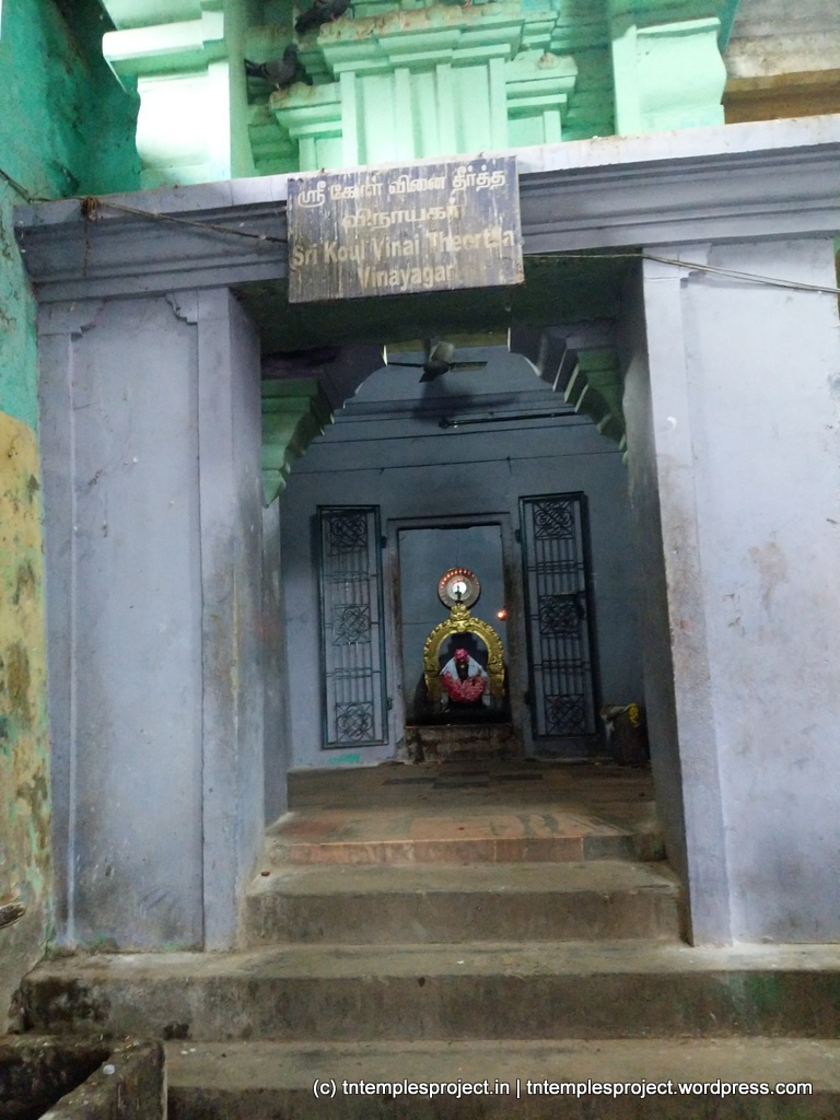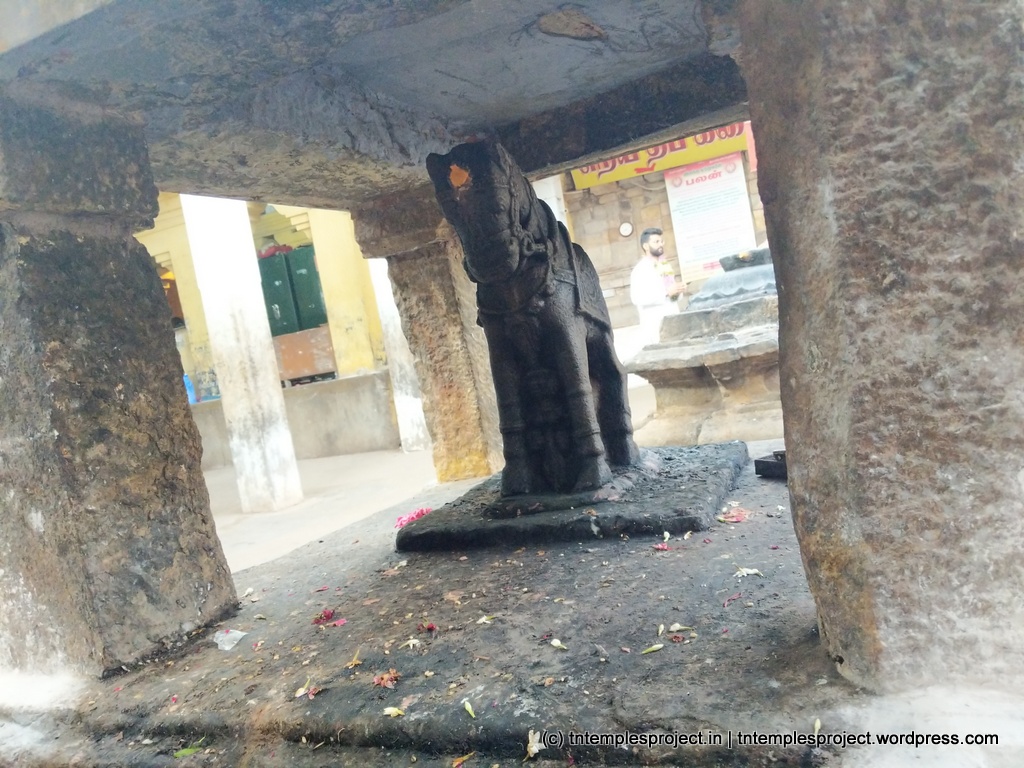 The worship procedure here is quite unique. As mentioned earlier, one should ideally visit here after worshipping at Tirumangalakudi. Even here, first worship is to Kol Vinai Teertha Vinayakar – named so because he solved the problem faced by the Navagraham (in the sthala puranam) – located in the south-east corner. Next, one proceeds to the main shrine, and first worships Viswanathar and Visalakshi Amman, followed by Suryan in the garbhagriham, and then Guru who faces Suryan – ostensibly to cool down the extreme heat emanating from Suryan. This is where it gets interesting. Typically, one would exit the mandapam from the left. Here, one has to exit from the right, walk counter-clockwise around the rear of the garbhagriham, and reach Chandikeswarar. After this, the order to be followed is clockwise, and worship the shrines in that path, in the order of: Rahu, Sukran, Ketu, Chandran, Sevvaai, Budhan and Sani. Finally, one arrives back at the dhwajasthambam, and performs namaskaram (prostration) facing north.