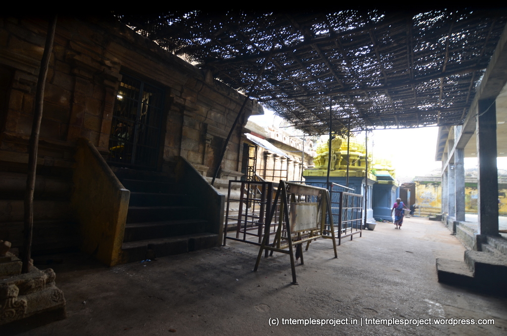 As one enters the mandapam in front of the garbhagriham, Siva and Parvati as Viswanathar and Visalakshi Amman can be seen on the left.