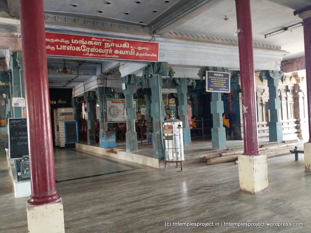 பரிதியப்பர் கோயில் என்பது கோயிலின் இருப்பிடம் மற்றும் கோயிலின் பெயர் இரண்டையும் குறிக்கிறது. தமிழில் பரிதி, சமஸ்கிருதத்தில் பாஸ்கரா என்றால் சூரியன் என்று பொருள். சூரியக் கடவுளான சூரியன் இங்கு சிவபெருமானை வழிபட்டார் என்ற புராணக்கதையிலிருந்து இந்த இடமும் கோயிலும் அவற்றின் பெயர்களைப் பெற்றன.