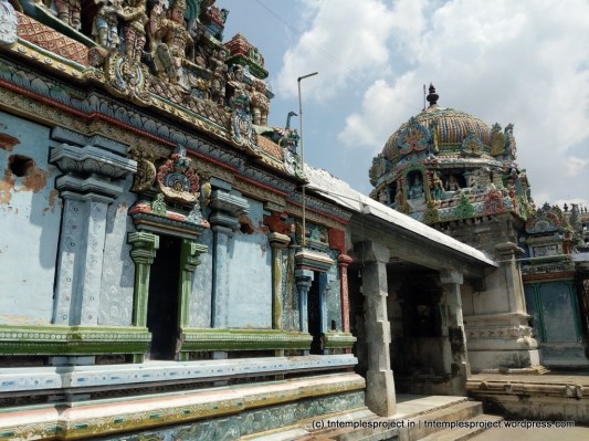 கோயிலில் உள்ள சன்னதிகளில் சில சுவாரஸ்யமான மற்றும் தனித்துவமான அம்சங்கள் உள்ளன. த்வஜஸ்தம்பத்திற்கு அருகில் நந்தி/ரிஷபம் இருக்கும் போது, மூலஸ்தானத்தில் உள்ள லிங்கத்தின் முன் (பொதுவாக நந்திக்காக ஒதுக்கப்பட்ட இடம்) சூரியனின் சிலை நின்ற கோலத்தில் உள்ளது. கோவில் பிரகாரத்தில் கர்ப்பகிரஹத்திற்கு வடக்கே வழக்கமான சண்டிகேஸ்வரர்களுக்கு பதிலாக 3 சண்டிகேஸ்வரர்கள் உள்ளனர். மேற்கு கோஷ்டத்தில் மகா விஷ்ணுவுடன் ஆஞ்சநேயருக்கும் தனி சந்நிதி உள்ளது.