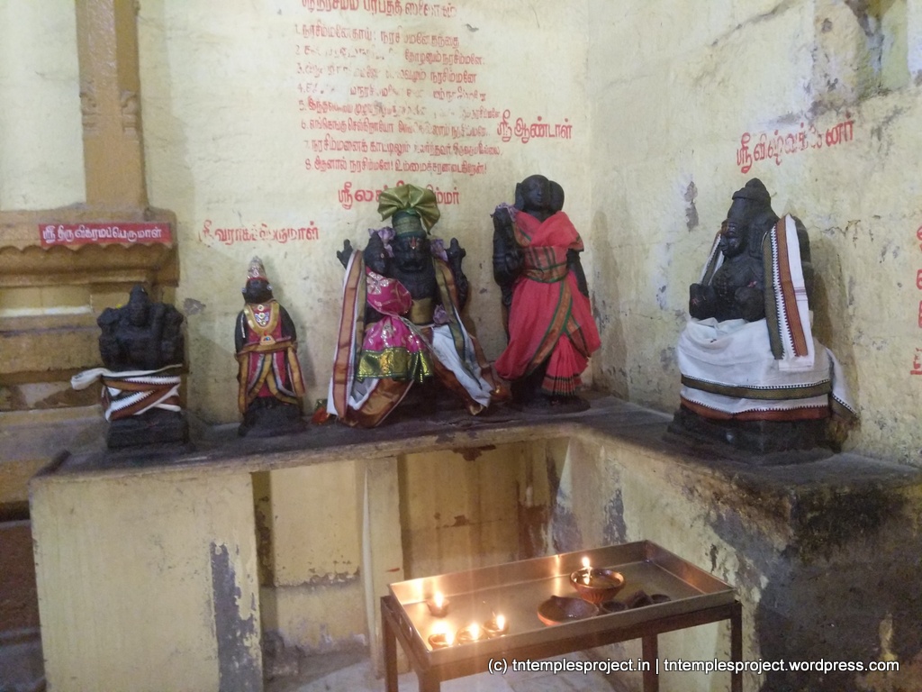பெருமாள் (நரசிம்மர்) அமர்ந்த கோலத்தில் இருக்கிறார். இங்கு முக்கியமாகக் கருதப்படும் சக்கரத்தாழ்வார் சரத்தாழ்வாரிடம் இருக்கும் சக்கரத்தில் விஷ்ணு பகவான் ஸ்தாபிக்கப்பட்டதாகக் கருதப்படுகிறது.