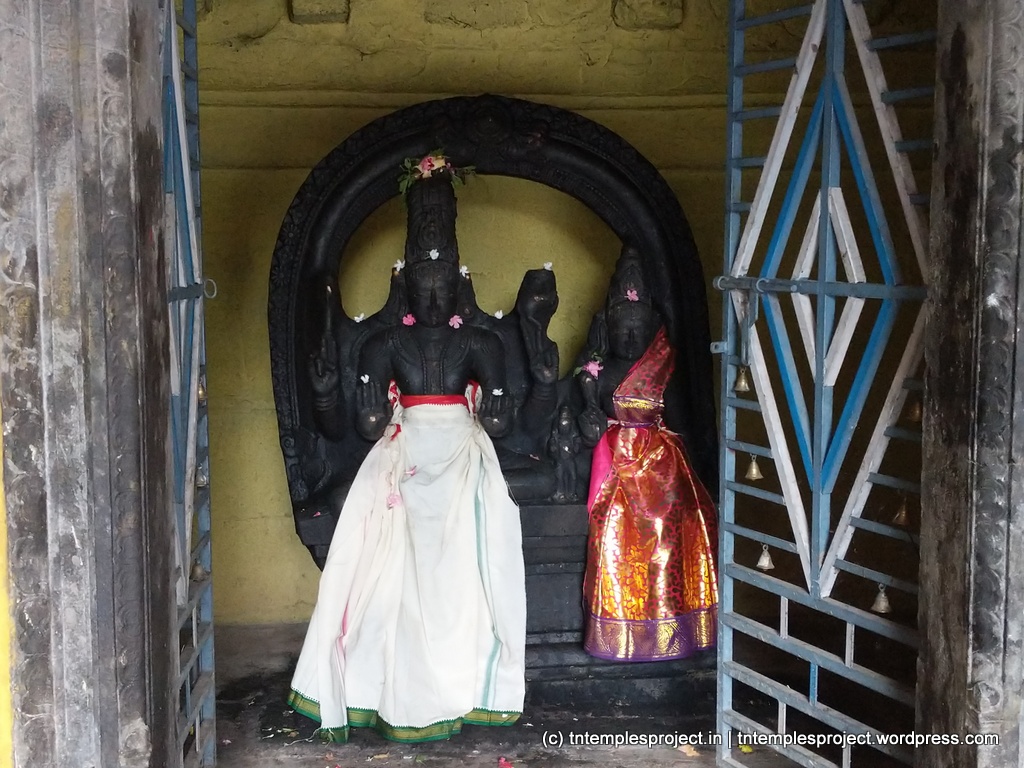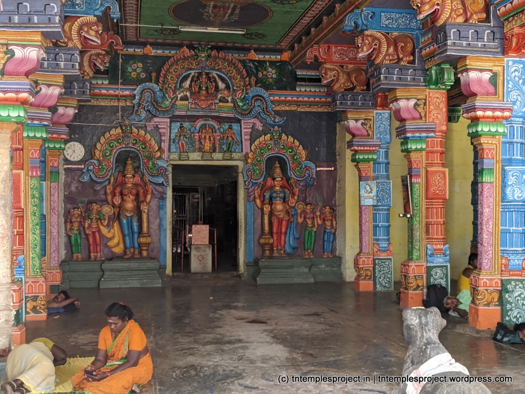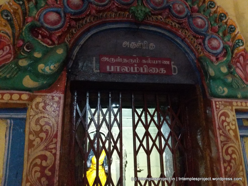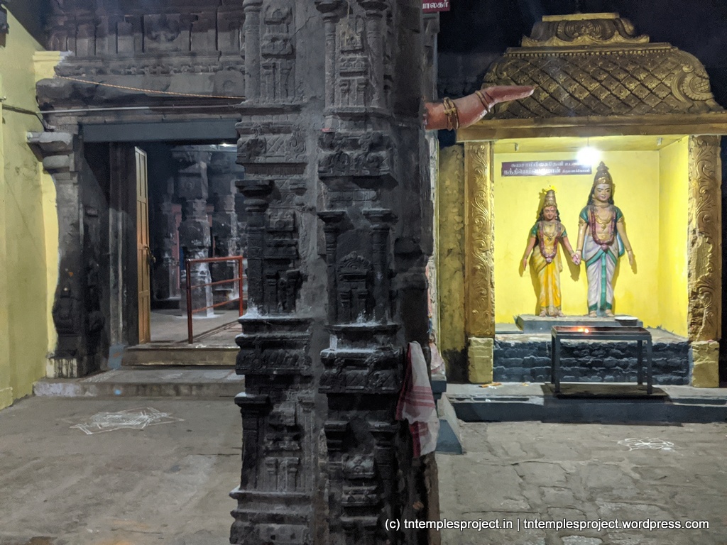 Somaskandar’s vigraham (idol) is made of a single stone is enshrined separately. There are separate shrines for Balambikai and Sundarambikai, as well as for Kathyayini (all forms of Ambal). There is also a vigraham for Markandeya rishi, depicted with the axe (mazhu) in his hand.