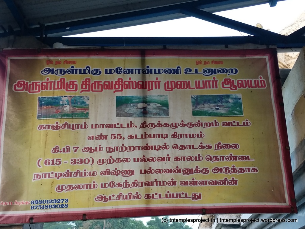 There is no sthala puranam for this temple. However, this is regarded as a very old temple, and archaeological evidence has placed this temple’s origins to the 7th century, during the Pallava period, during the time of Mahendravarma Pallava (Mahendravarman I).