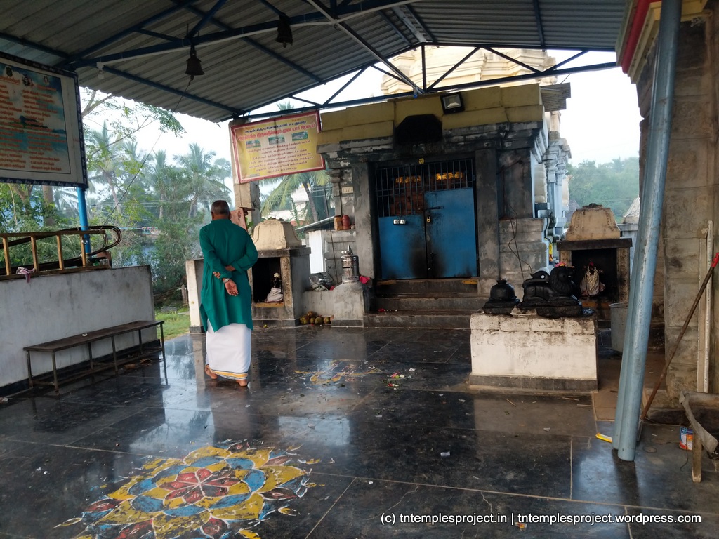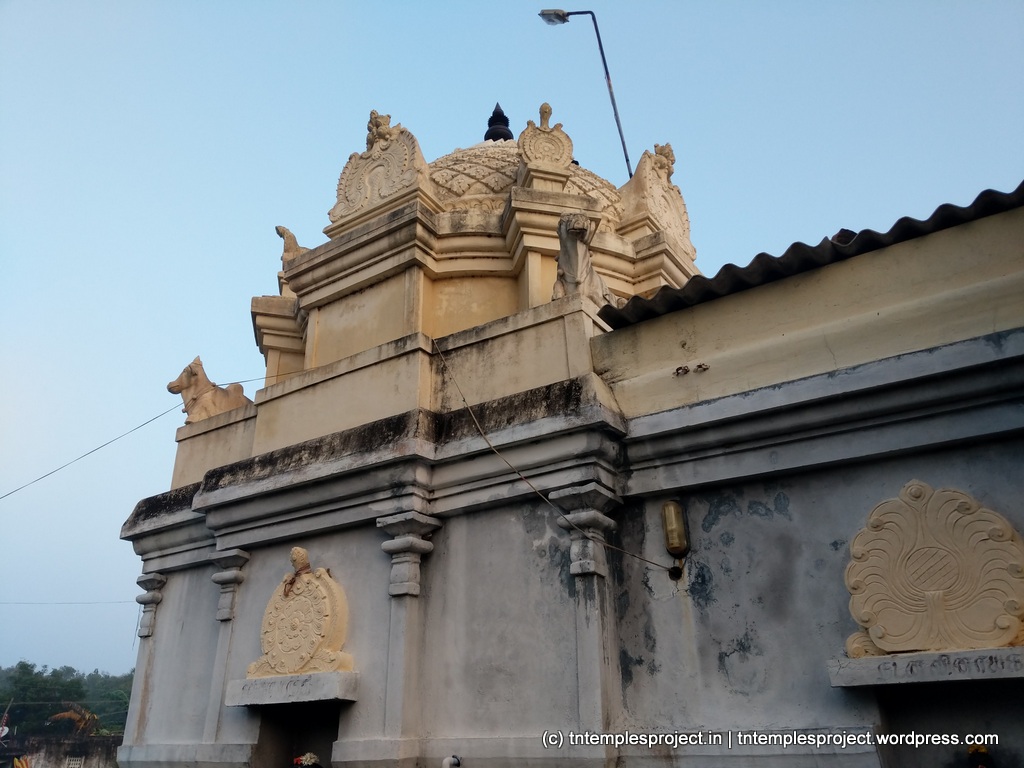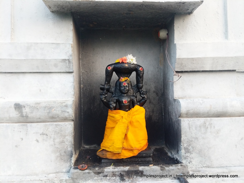 The temple is east facing, but can be entered only through a small gate on the western side. The moolavar is also called Agasteeswarar, possibly a link to sage Agastyar having worshipped here. Vinayakar and Murugan are to either side of the garbhagriham, there being no dwarapalakas. The murti of Dakshinamurti in the koshtam is beautiful, even if it is a relatively recent one.