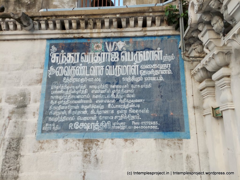 தோன்றி நிவாரணம் அளித்தனர். தாயார் திரௌபதிக்கு தோன்றினார். பீமன் வைகுண்ட வரதரை வழிபட்டதாகக் கூறப்படுகிறது. துரியோதனன் மற்றும் சகுனியிடம் சூதாட்டத்தில் ஈடுபட்டு ஞானத்தை இழந்த பாண்டவர்கள், இங்கு வழிபட்ட பிறகு மீண்டும் ஞானம் பெற்றதாகக் கூறப்படுகிறது.
