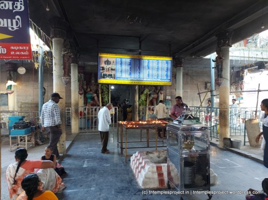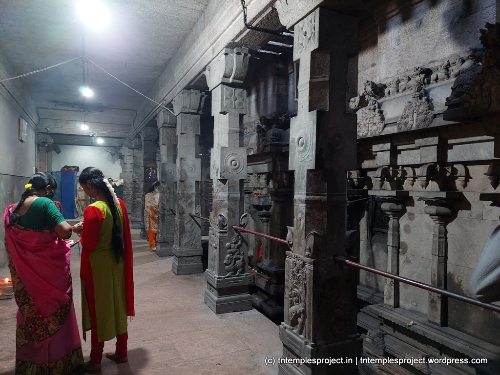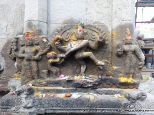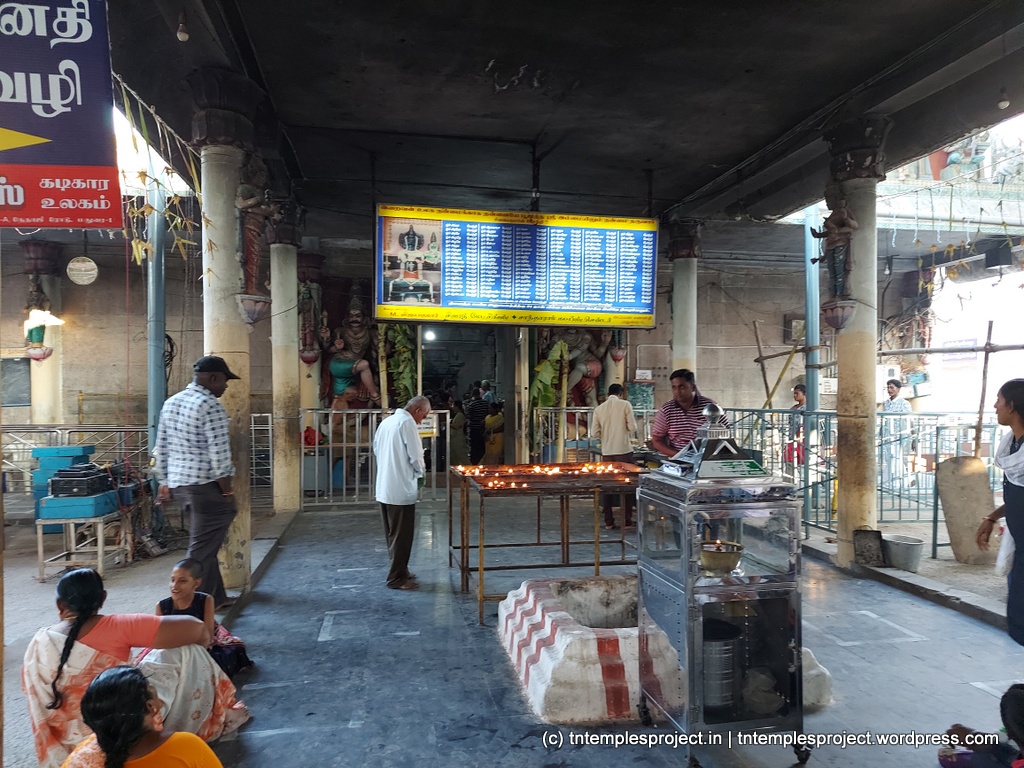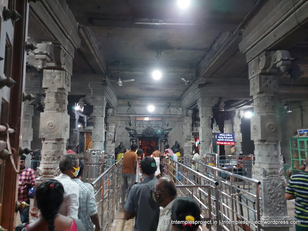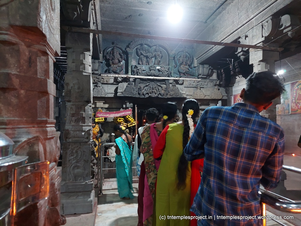 Typically, in Siva temples, Chandikeswarar does not receive special worship. However, at this temple, Chandikeswarar is said to recommend to Siva, the desires of devotees (and so is named Parinthuraikkum Nathar – the one who speaks favourably for devotees). So, he is worshipped specifically, by adorning him with the same garland that is placed around the Siva Lingam.