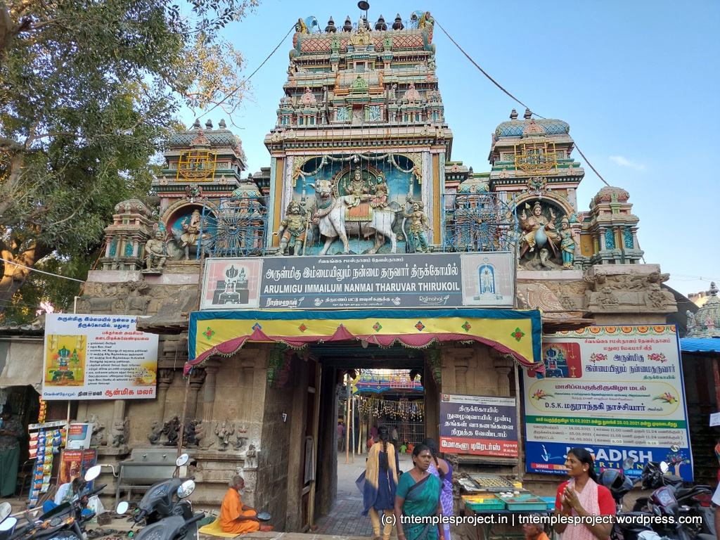 The general belief is that one’s sins are relieved only in a subsequent birth. Worshipping Immaiyilum Nanmai Tharuvaar (literally, the One who blesses in this birth) is said to get rid of sins committed during one’s lifetime itself.