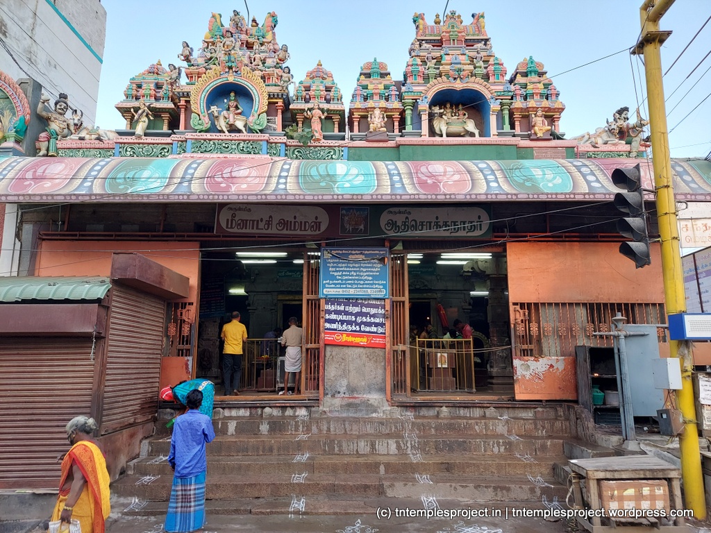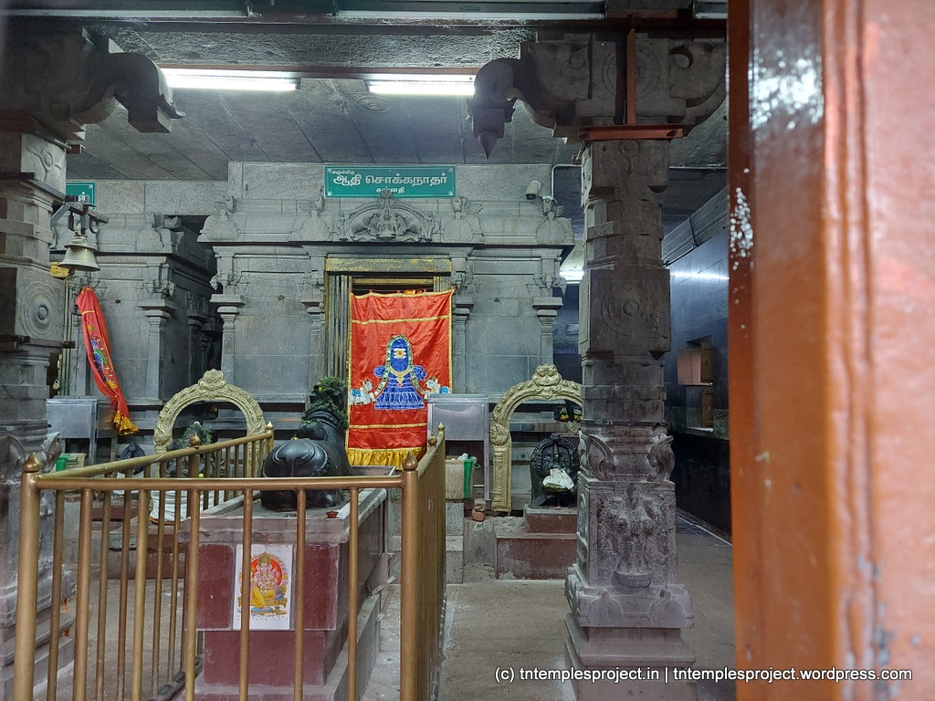 While the sthala puranam refers to an ancient temple, the structural temple we see today is of much more recent origin, possibly a few hundred years old. The temple, located on the side of the road in Simmakkal, is very simply built. It does not have a gopuram, and has two separate sanctums – for Aadi Sokkanathar and Meenakshi Amman – both facing east. There is a separate Navagraham shrine in the northeast corner, and there are koshta deities, set as per agamic rules. Interestingly, there is a small shrine with a murti of Idaikkar siddhar.