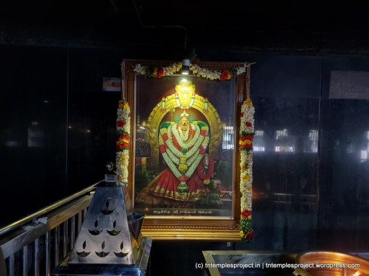 Rakayee Amman is considered the sister of Sundararaja Perumal (as always, Parvati is regarded as Vishnu’s sister). She protects Sundararaja Perumal during the night, while Adiseshan guards Perumal during the day. Once a year, on the Dwadasi day of the waxing phase of the Tamil month of Aipasi (October-November), Sundararaja Perumal comes over to the Rakayye Amman temple to witness the thaila kaapu for Amman.