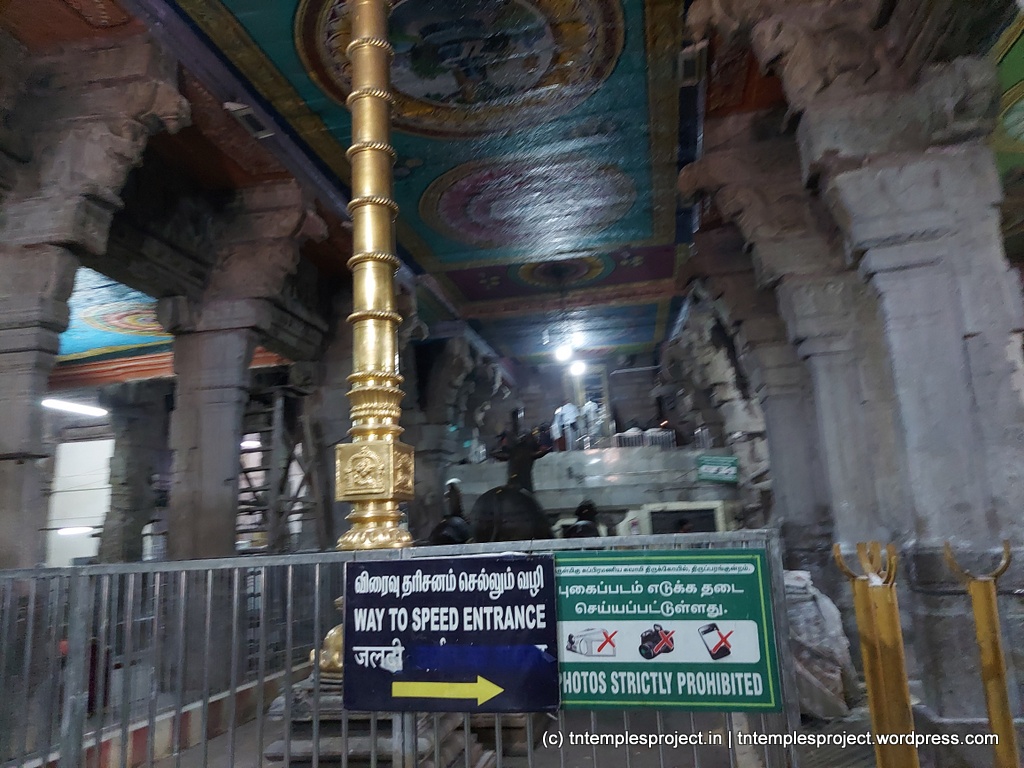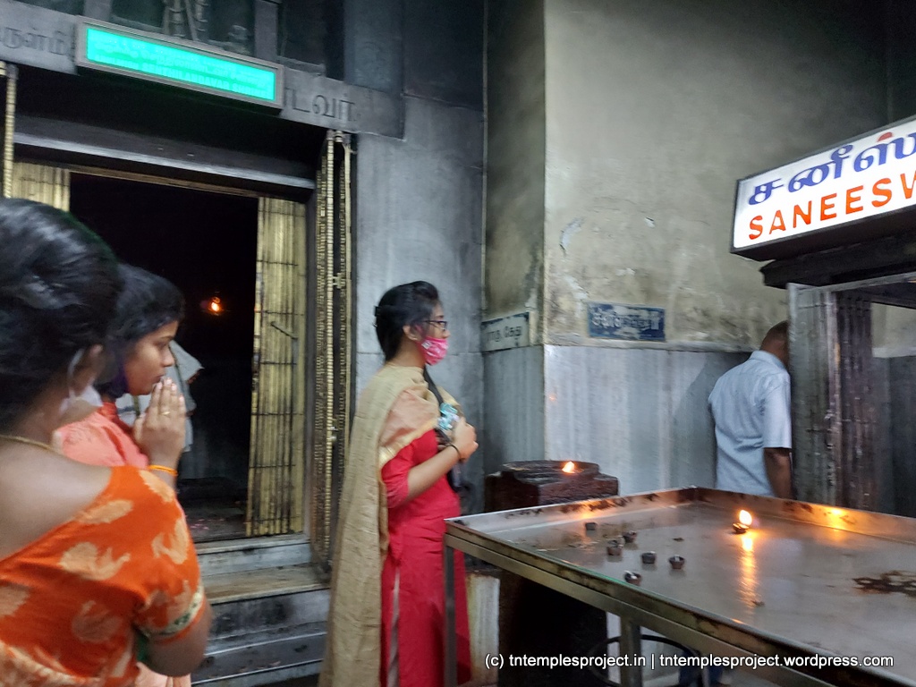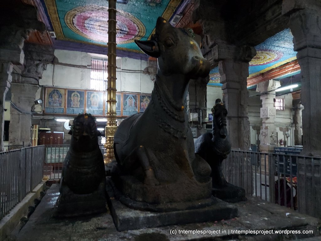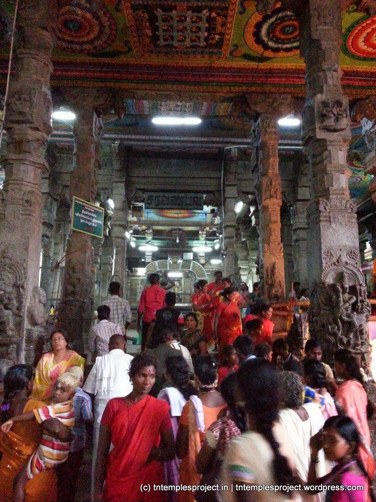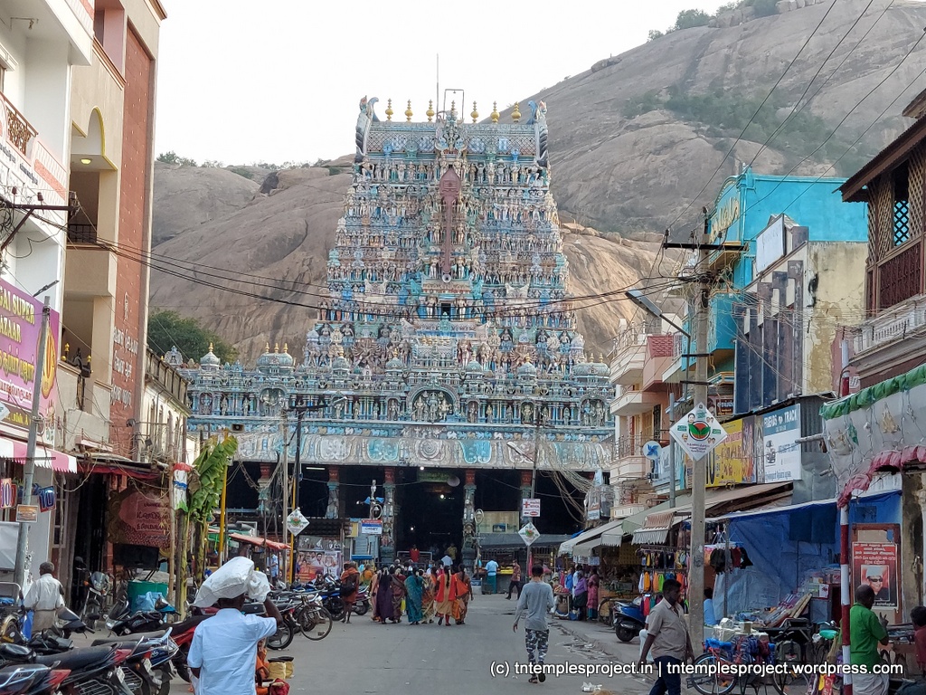On the street opposite the main entrance to the temple, and just before the 16-pillared mandapam (which one can see coming from Madurai, is the Sokkanathar temple. Many people miss this temple as it is not very well known. However, it is connected to the main Satya Gireeswarar temple’s history, and has some excellent architecture and idols carved in stone.