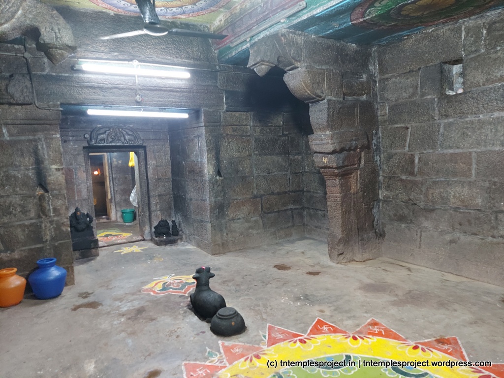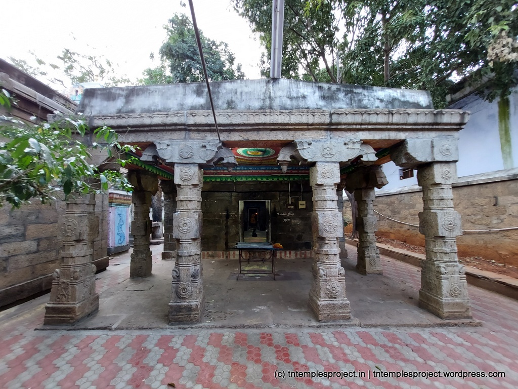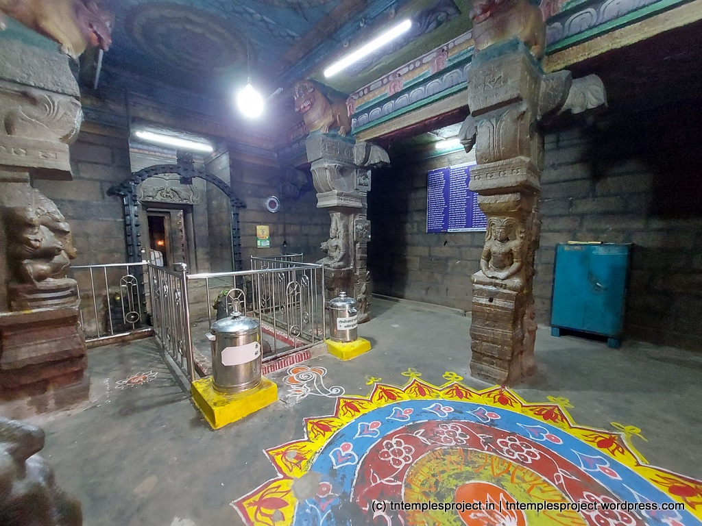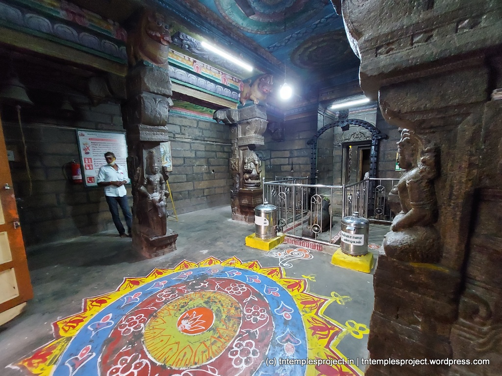 Despite being a small temple, it stays true to agamic principles, including a separate Nandi for Meenakshi Amman. The structural temple is from the Pandya period, and is therefore a repository of some very interesting and unique architecture and depictions. These include: Siva and Parvati on Rishbaha Vahanam, Vinayakar depicted standing in a fire-pit and worshipping His parents, Parvati on the Kalpaka Vriksham, Perumal praying to Siva, Vinayakar riding on a bunch of bootha-ganas as His vehicle, Veerabahu with a club instead of his sword, etc.