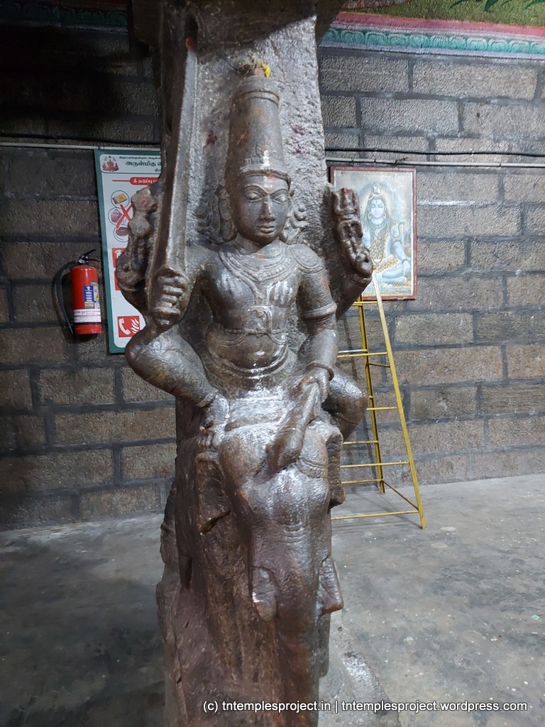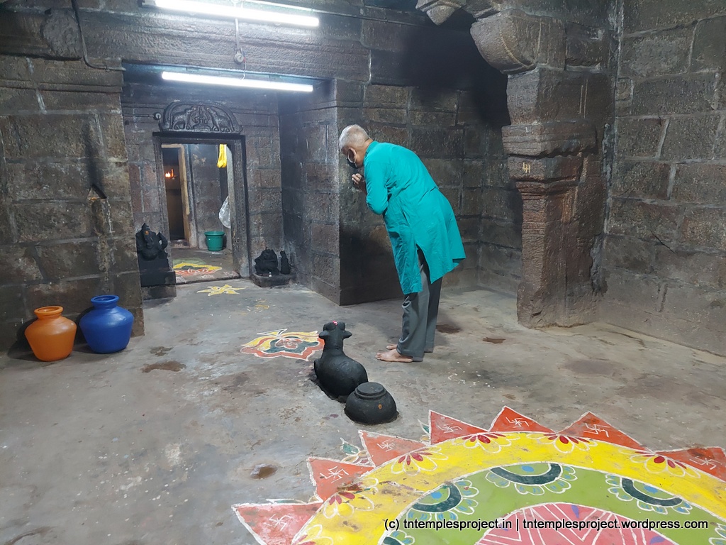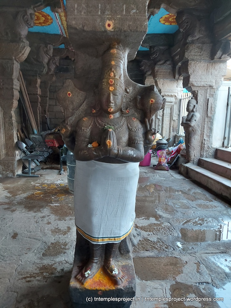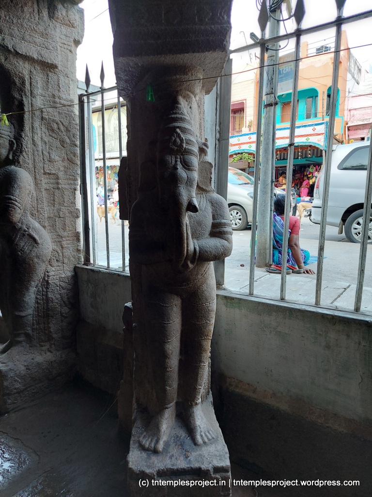 Despite being a small temple, it stays true to agamic principles, including a separate Nandi for Meenakshi Amman. The structural temple is from the Pandya period, and is therefore a repository of some very interesting and unique architecture and depictions. These include: Siva and Parvati on Rishbaha Vahanam, Vinayakar depicted standing in a fire-pit and worshipping His parents, Parvati on the Kalpaka Vriksham, Perumal praying to Siva, Vinayakar riding on a bunch of bootha-ganas as His vehicle, Veerabahu with a club instead of his sword, etc.