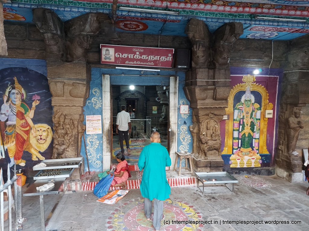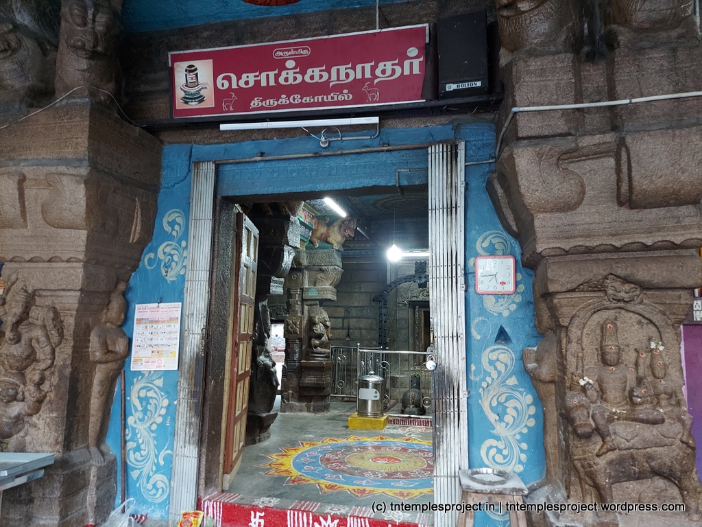 Among the more famous temples in and around Madurai are the Meenakshi-Sundareswarar temple (Madurai Meenakshi Amman temple), as well as the Tiruparankundram Satya Gireeswarar temple and the Tiruparankundram Murugan Arupadai Veedu temple. However, located just 100 meters from the main entrance of the Tiruparankundram temples (and next to the 16-pillared mandapam of that temple), is a separate temple for Siva as Sokkanathar, together with Meenakshi Amman.