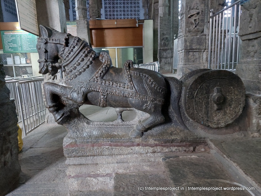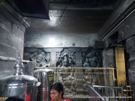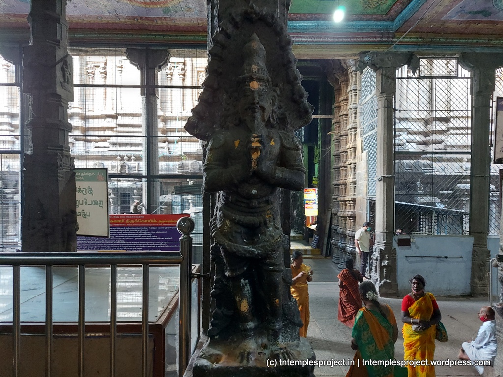 அரிதான அமைப்பில், கோயிலின் முதன்மைக் கடவுள்களின் (சிவன் – நந்தி, விநாயகர் – மூஷிகம், முருகன் – மயில்) வாகனங்கள் (வாகனம்) கொடிமரம் (கொடிமரம்) அருகில் உள்ளன மற்றும் கருடாழ்வார் சண்முகர் சந்நிதியில் முருகனுக்கு எதிரே உள்ளது.