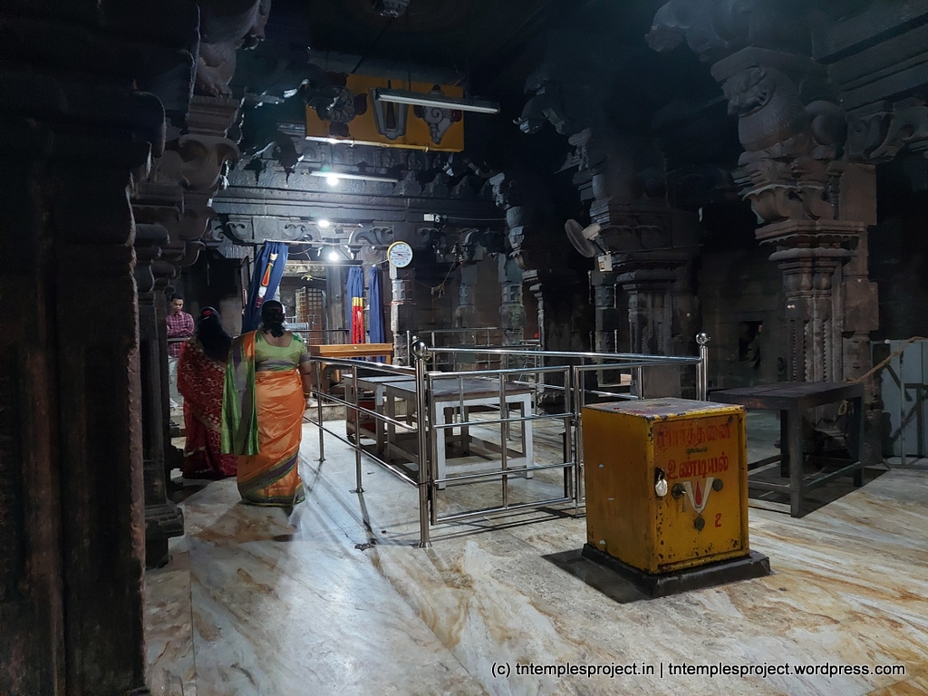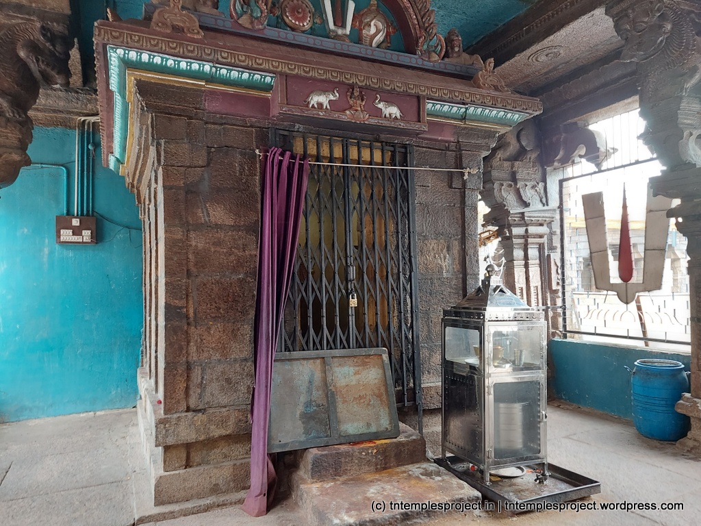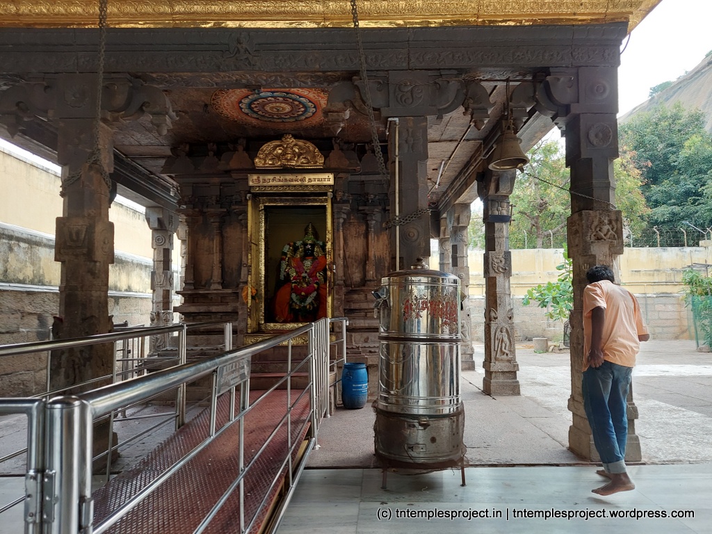 கோயிலுக்குள் நுழைந்தவுடனேயே தாயாருக்கு தெற்கு நோக்கிய சன்னதி உள்ளது. பிரதான கோவில் வளாகத்திற்கு வெளியே (தீர்த்தத்திற்கு அருகில்) கருடன், ஆஞ்சநேயர் மற்றும் விநாயகருக்கு தனித்தனி சன்னதிகள் உள்ளன.