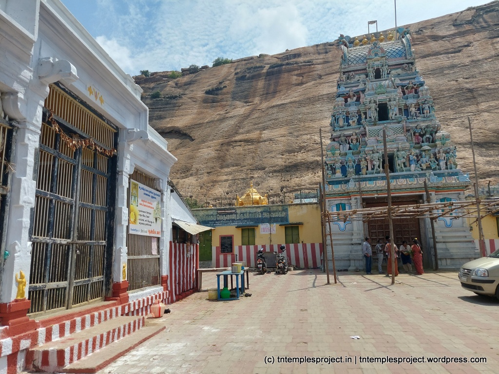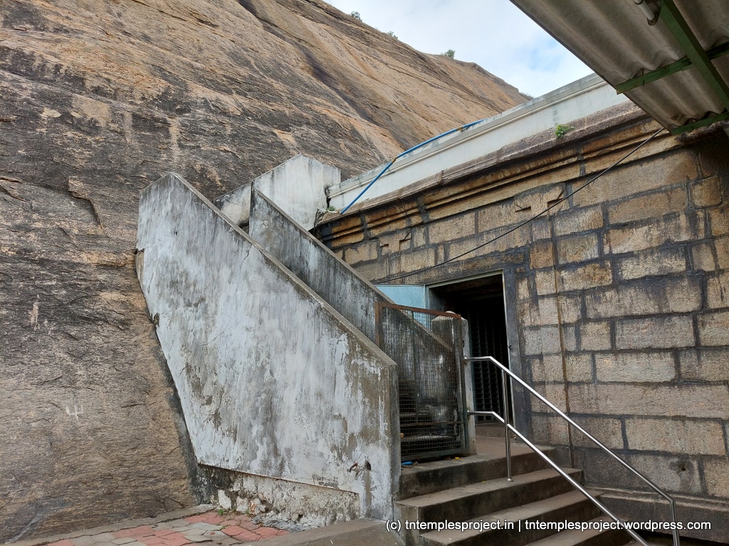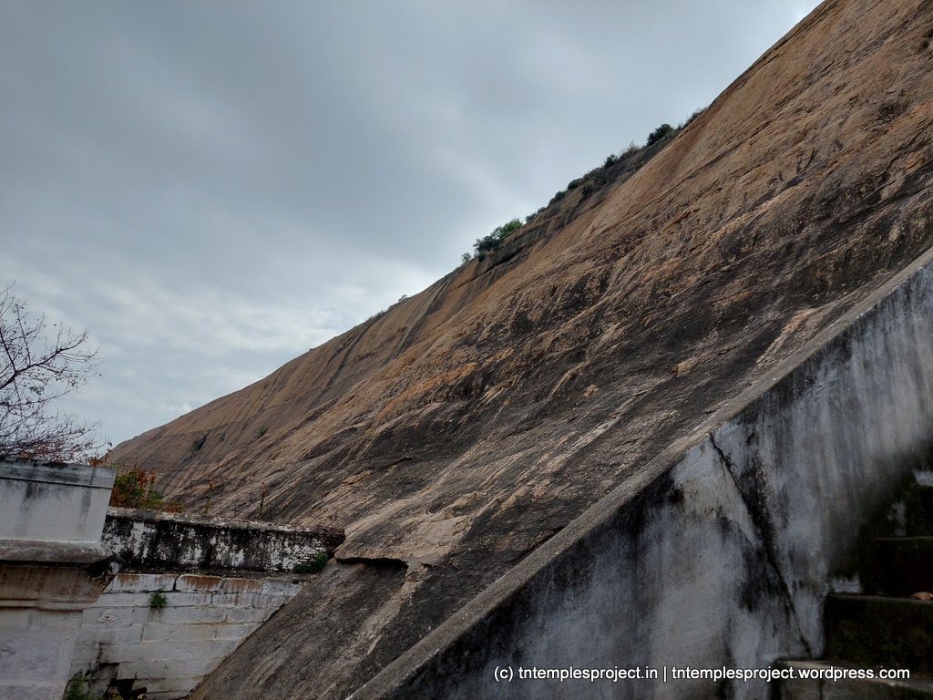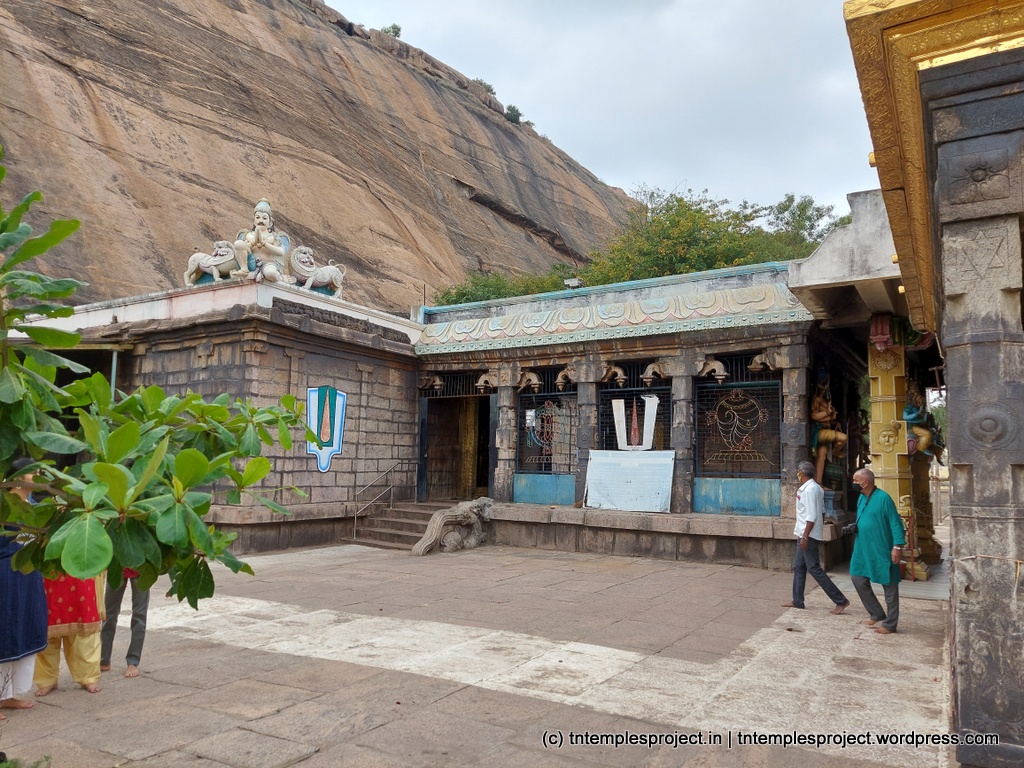 பாறைக் கோயிலாக இருப்பதால், கர்ப்பகிரஹத்தின் பின்புறச் சுவர் மலையே என்பதால், கோயிலையோ, இறைவனையோ பிரதக்ஷிணம் செய்ய முடியாது. கோயிலில் த்வஜஸ்தம்பம் (கொடிமரம்) இல்லை. பொதுவாக த்வஜஸ்தம்பத்தின் உயரம் கர்ப்பகிரஹத்தின் விமானத்தின் உயரம் மற்றும் அகலத்தின் அடிப்படையில் அமைந்திருக்கும். இக்கோயிலில், யானைமலையே விமானம் என்பதால், துவஜஸ்தம்பம் நிறுவுவது சாத்தியமில்லை என்று கருதப்படுகிறது.