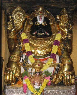 இதை இன்னும் அசாதாரணமானது என்னவென்றால், உற்சவர் நரசிம்மர் – வேத நரசிம்மர், அபய ஹஸ்தத்தில் ஒரு கையில் வைத்திருப்பவர், மற்றொரு கையில் சூலாயுதம் வைத்திருப்பவர். மூலவர் மற்றும் உற்சவர் இருவரும் ஒரே தெய்வமாக இருப்பது ஒரு சில கோவில்களில் மட்டுமே.