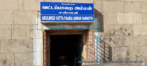 ஆதிபுரீஸ்வரர் சன்னதியின் வெளிப்புறத்தில் வட்டப்பாறை அம்மன் தனி சன்னதி உள்ளது. தமிழில் வட்ட பாறை என்பது வட்ட வடிவ கல் அல்லது பாறை என்று பொருள்படும், மேலும் அம்மன் சன்னதிக்கு வெளியே வட்டமான கல் இருப்பதால் அம்மன் என்று பெயர் சூட்டப்பட்டது. தன் கோபத்தால் மதுரையை எரித்த கண்ணகி – இன்னும் கோபத்தால் கொதித்தெழுந்தாள் – பார்வதியுடன் பகடையாட்டம் ஆடிய சிவனை வழிபட இங்கு வந்தாள் என்று கூறப்படுகிறது. சிவன் தன் பகடையை கோவில் கிணற்றில் எறிந்தார், கண்ணகி அவற்றை எடுக்க குதித்தாள். உடனே, சிவா கிணற்றை ஒரு வட்டப் பாறையால் மூடி, கண்ணகியின் கோபம் கட்டுப்படுத்தப்படுவதை உறுதி செய்தார். கண்ணகி பிற்காலத்தில் அம்மன் வடிவமானாள் என்பது நம்பிக்கை. ஆதிசங்கரர் அவளது கோபத்தைக் கட்டுப்படுத்த இத்தலத்தின் அருகே ஸ்ரீசக்கரம் ஒன்றையும் நிறுவினார்.