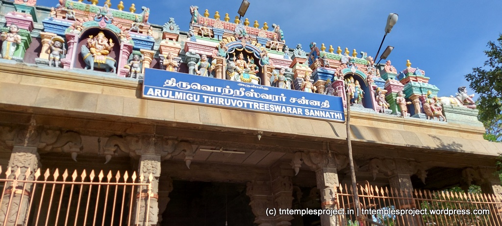 இக்கோயிலில் தியாகராஜர், ஆதி புரீஸ்வரர், மீனாட்சி சுந்தரர், திருவொற்றீஸ்வரர் போன்ற சிவனின் பல்வேறு வடிவங்கள் உட்பட பல சன்னதிகள் உள்ளன. பைரவருக்கு தனி சன்னதியும், சங்கிலி நாச்சியாரை சுந்தரர் மணந்த மண்டபமும் உள்ளது.