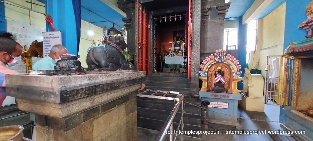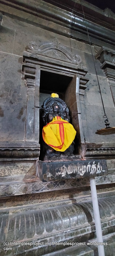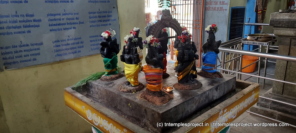 Despite its small size, the temple has several deities in their respective shrines. Behind the moolavar Lingam is a bronze murti of Siva united with Parvati, as Ardhananareeswarar, seated on the Rishabha Vahanam.