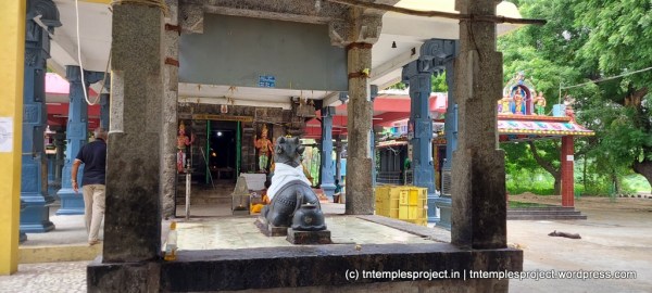 கர்ப்பகிரஹத்திற்கு முன்புள்ள அர்த்த மண்டபத்தில் துவாரபாலகர்களுக்குப் பதிலாக விநாயகரும் முருகனும் உள்ளனர்.