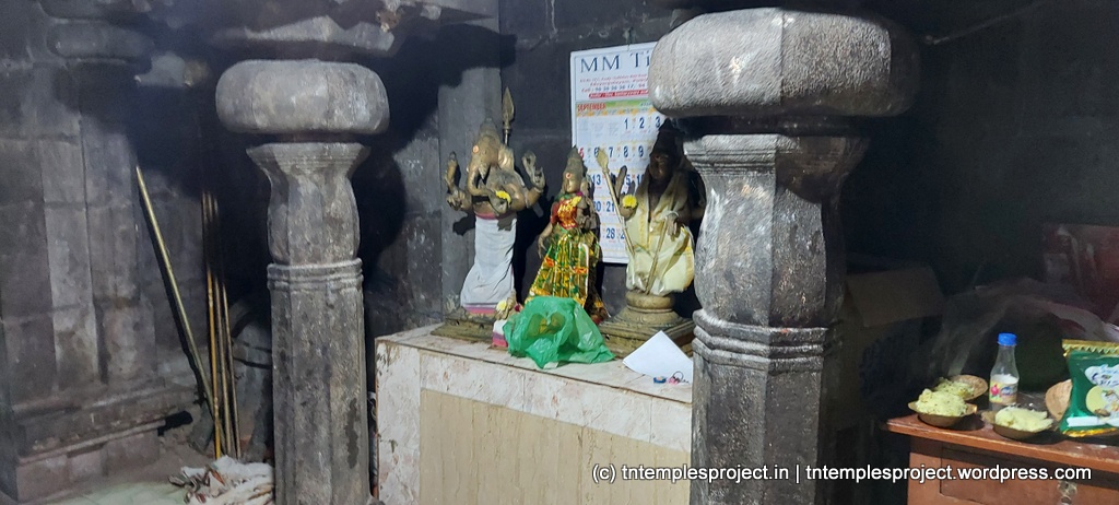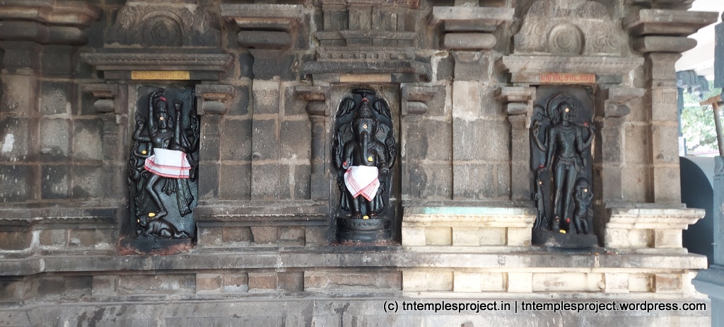 பொதுவாக, சிவாலயங்களில், விநாயகர், தட்சிணாமூர்த்தி, லிங்கோத்பவர் (அல்லது விஷ்ணு), பிரம்மா மற்றும் துர்க்கை ஆகிய ஐந்து தெய்வங்களைக் காணலாம். இக்கோயிலில், இந்த வழக்கமான தெய்வங்களும் காட்சியளிக்கும் அதே வேளையில், சிவனுக்கான கோஷ்ட மூர்த்திகள் நடராஜர், ஊர்த்துவ தாண்டவம், உமா சஹிதா மூர்த்தி, பாரியவர் மற்றும் பிக்ஷடனர் போன்ற வடிவங்களும் உள்ளன.