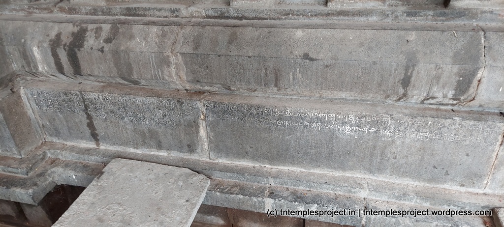 மகா மண்டபத்தின் தெற்குச் சுவரில் விக்ரம சோழனின் கல்வெட்டு உள்ளது. மேலும், கோயிலுக்கு பொதுவாக மானியங்கள் மற்றும் நன்கொடைகள், குறிப்பாக கோஷ்டத்தில் உள்ள ஊர்த்துவ தாண்டவ நடராஜர் பராமரிப்பு ஆகியவற்றைக் குறிப்பிடும் கல்வெட்டுகள் கோயிலில் உள்ளன.