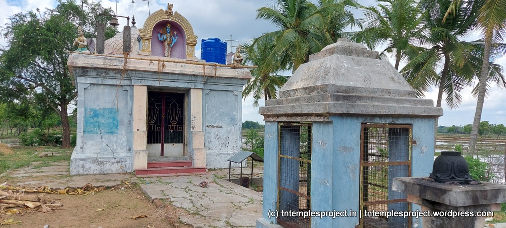 This small Perumal temple is located just a little further west of the Tirumeyachur Lalithambigai temple, and to the south of the Nattaru river. The temple is situated in an open field, surrounded by agricultural lands.