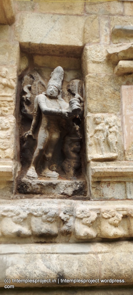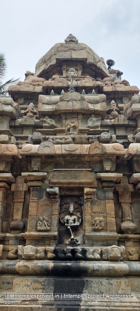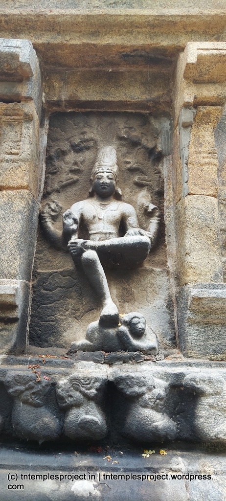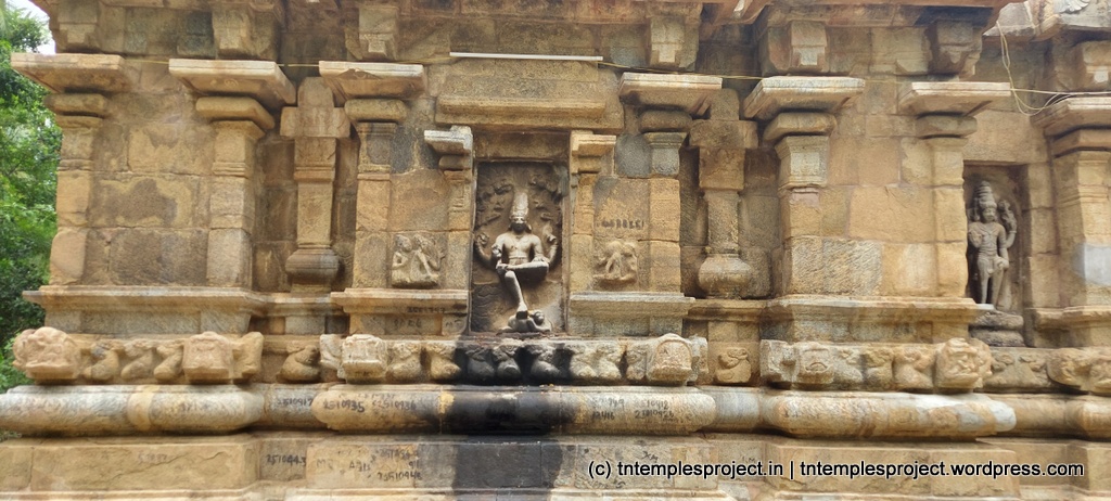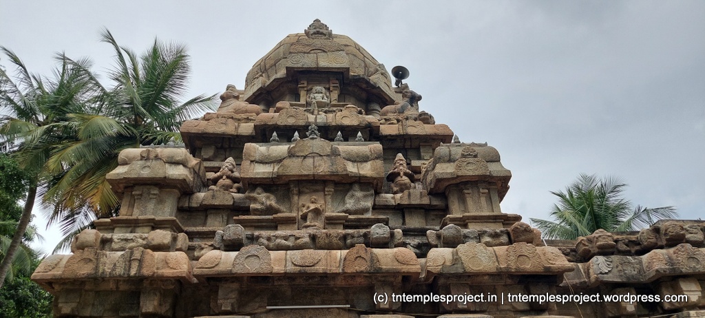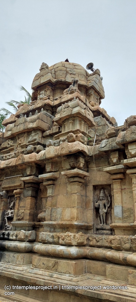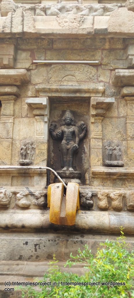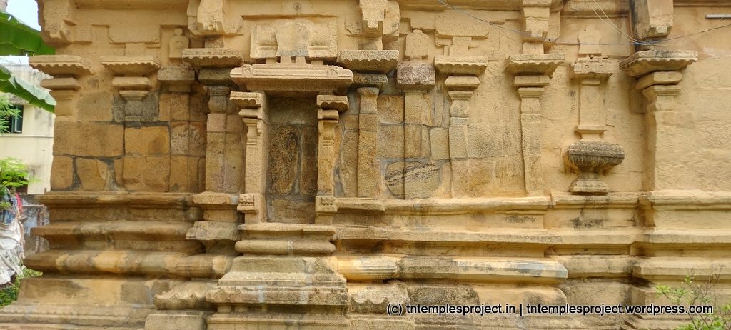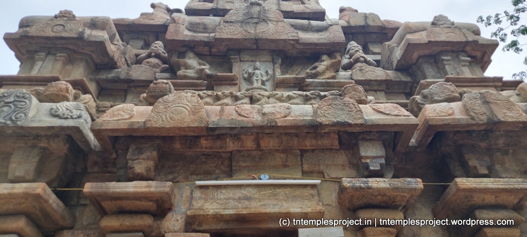 கர்ப்பகிரஹம் மற்றும் அர்த்த மண்டபத்தின் வெளிப்புறச் சுவர்களில் மொத்தம் பதினொரு கோஷ்டங்கள், ஒவ்வொன்றும் அதன் சொந்த மூர்த்திகளைக் கொண்டுள்ளன. கடிகார திசையில் சென்றால், அவை: நர்த்தன விநாயகர், தாண்டவத்தில் நடராஜர், கங்காதரேஸ்வரர், தட்சிணாமூர்த்தி, லிங்கோத்பவர், பிரம்மா, அஷ்டபுஜ பைரவர், அர்த்தநாரீஸ்வரர், அஷ்டபுஜ துர்க்கை மற்றும் கல்யாண சுந்தரர்.